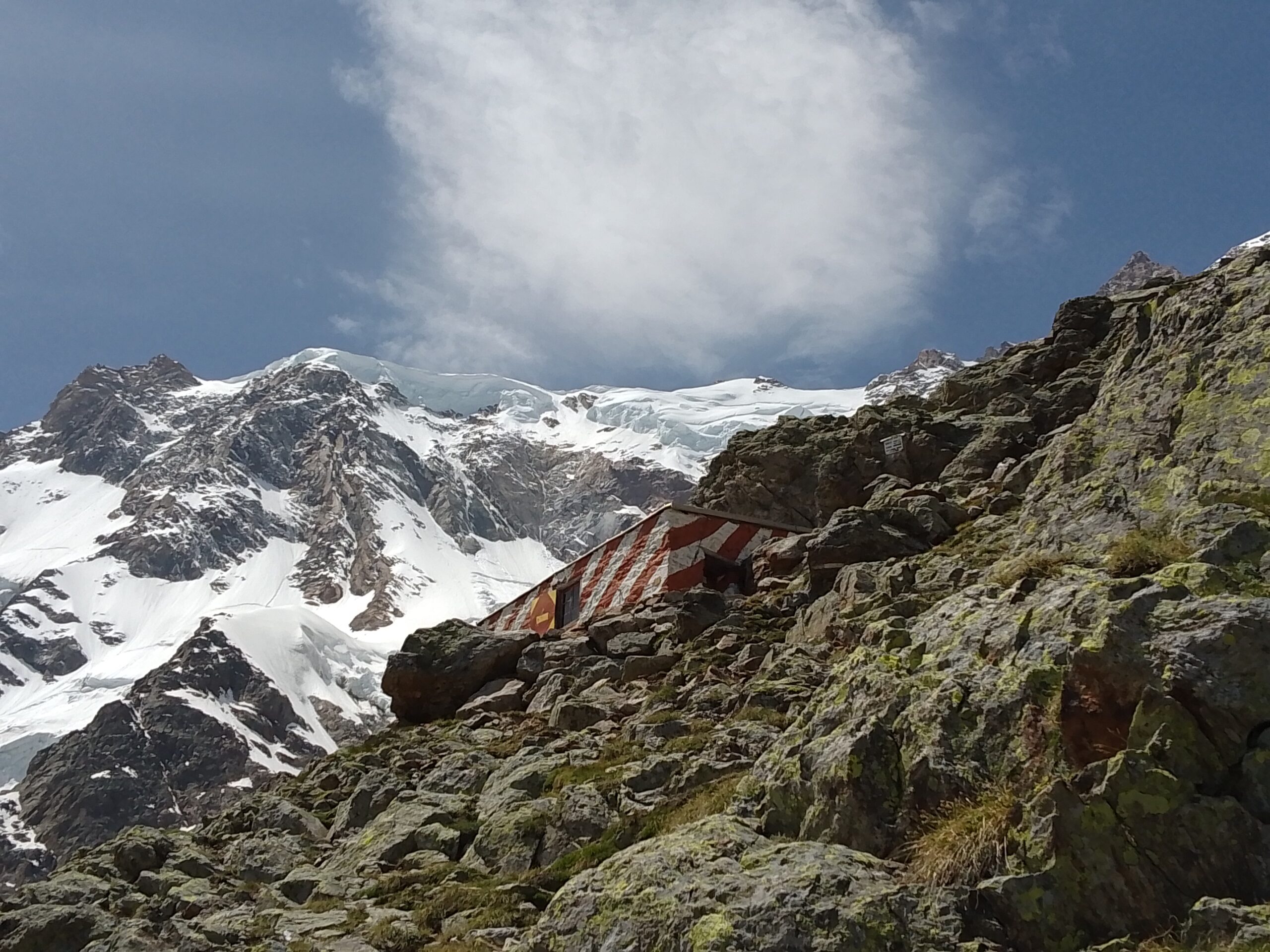 Il primo minuscolo ricovero in muratura venne costruito nel 1886; successivamente rinnovato e ingrandito, oggi può ospitare una dozzina di alpinisti.