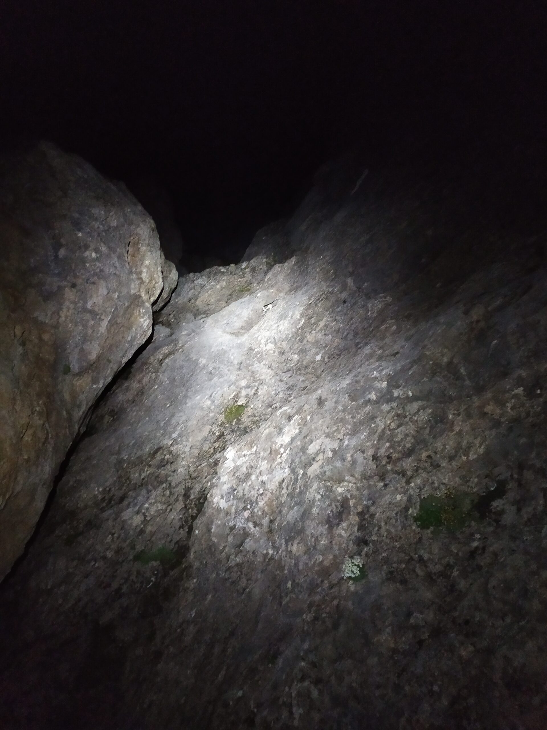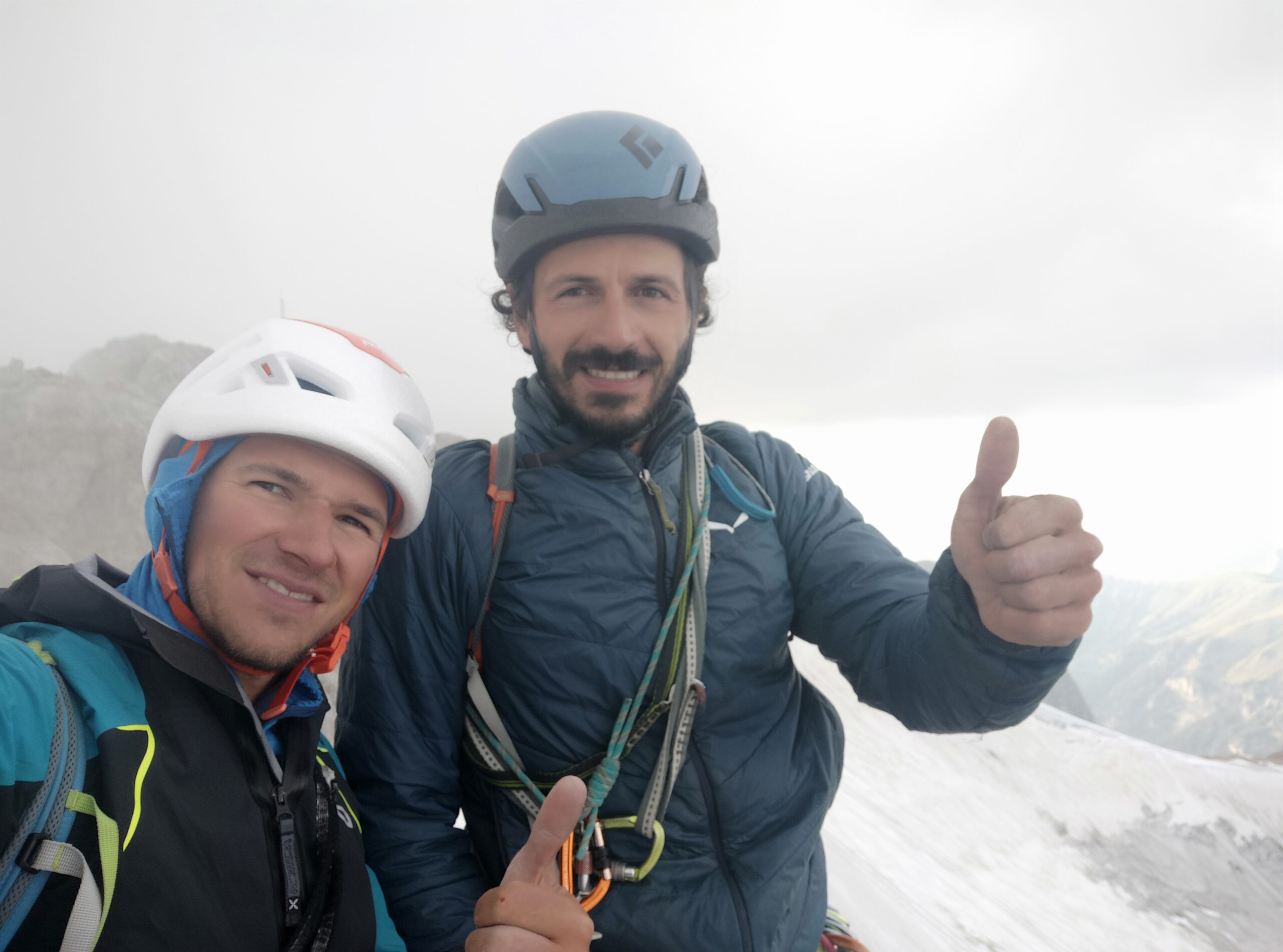 Noi avevamo due paia di ramponi che alla fine non abbiamo usato, ma non conoscevamo le condizioni del ghiaccio soprastante, e una picca leggera con il martello sul culo più una manciata di chiodi.