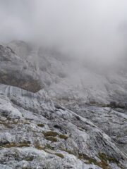 Sveglia alle 4.00, 4.40 in marcia. 40 min per arrivare all’attacco se si conosce il percorso (inserisco traccia gpx), fino al diedrone d’accesso (46°25’49.0″N 11°51’56.6″E). Ore 10.30 in cengia. 17.20 in vetta. Provare, per quanto possibile, di andare veloci nella parte bassa.