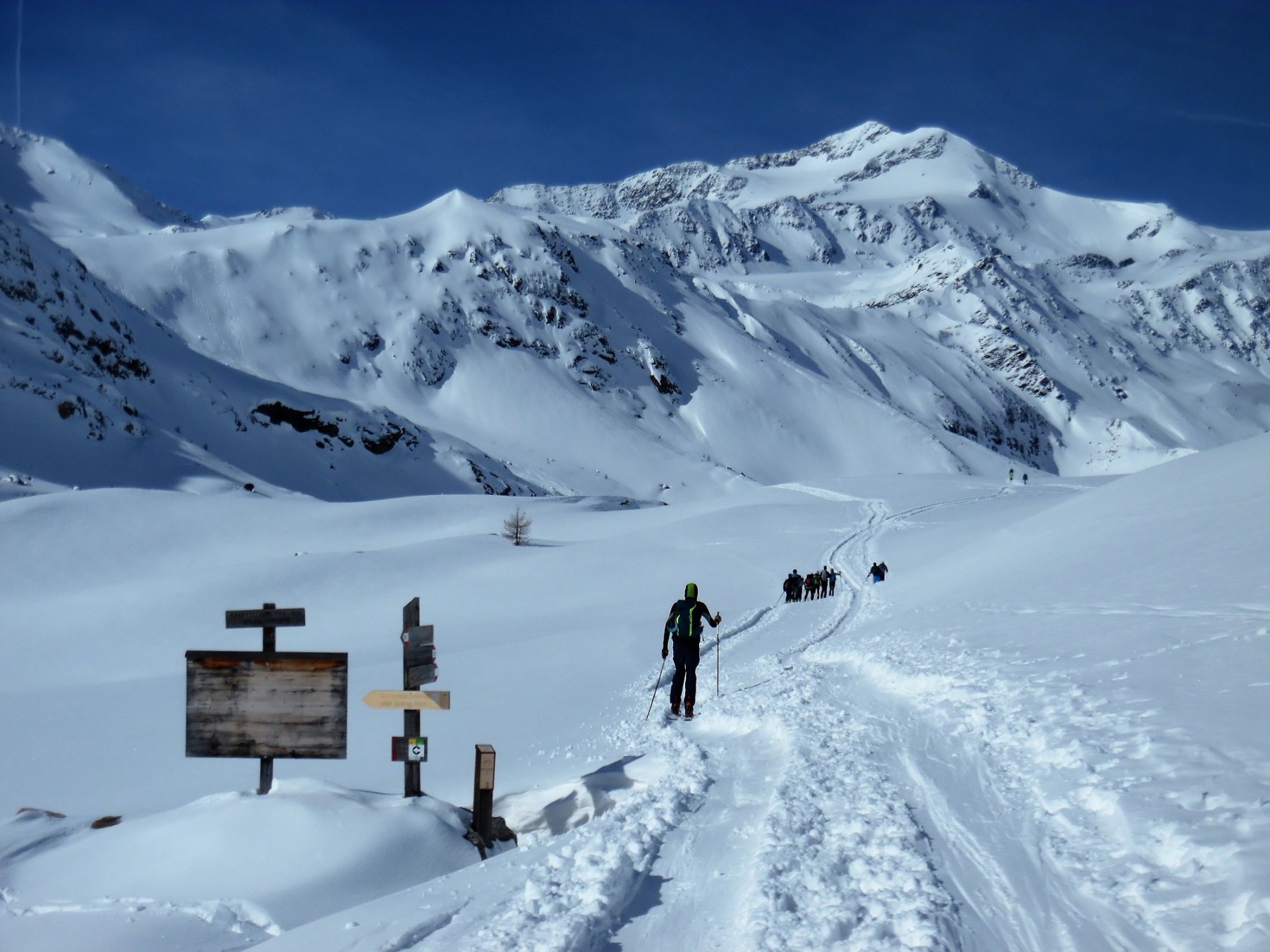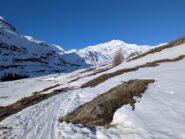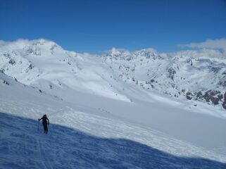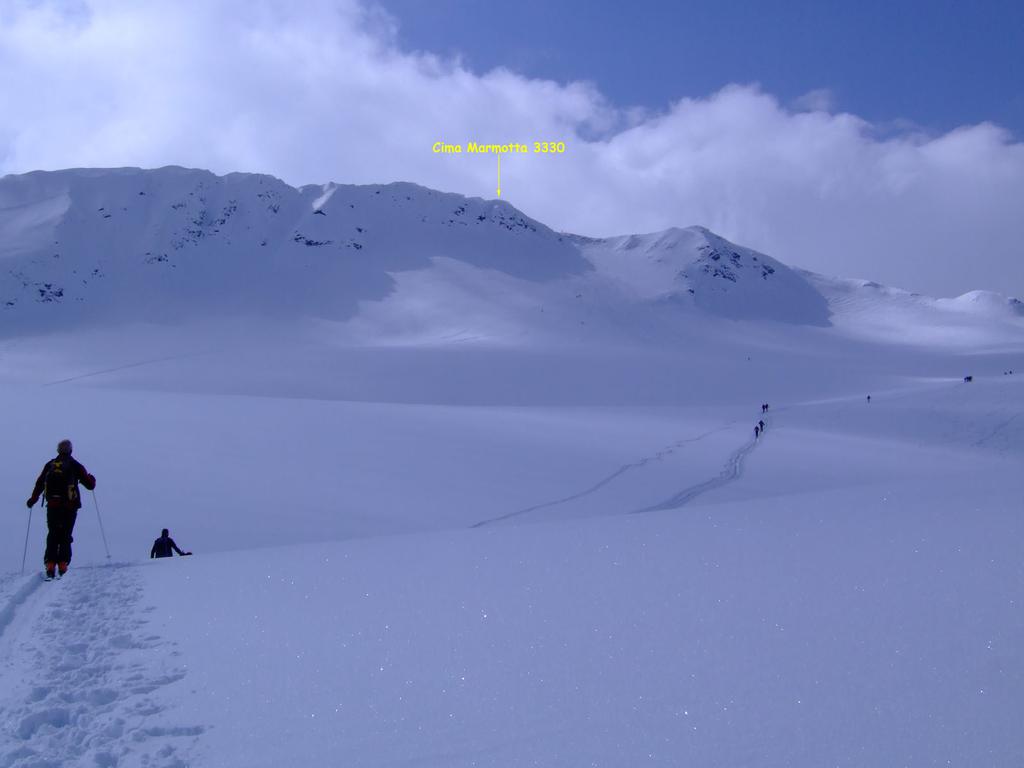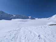 Discesa: per la via di risalita, oppure (consigliatissima se i ripidi pendii a nord del rifugio Nino Corsi non sono troppo carichi) si può scendere sul ghiacciaio a destra della punta, che porta appunto sopra tali pendii.
