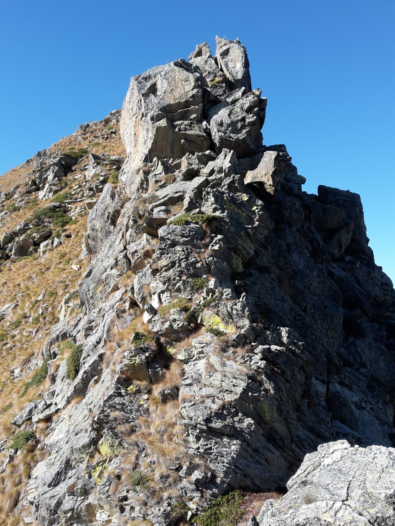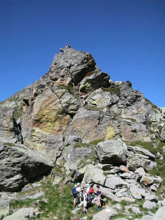 Salire quindi alla punta seguendo la “via ferrata”, il successivo “sentiero attrezzato” e poi il sentiero D23 ( 2h 30’~).