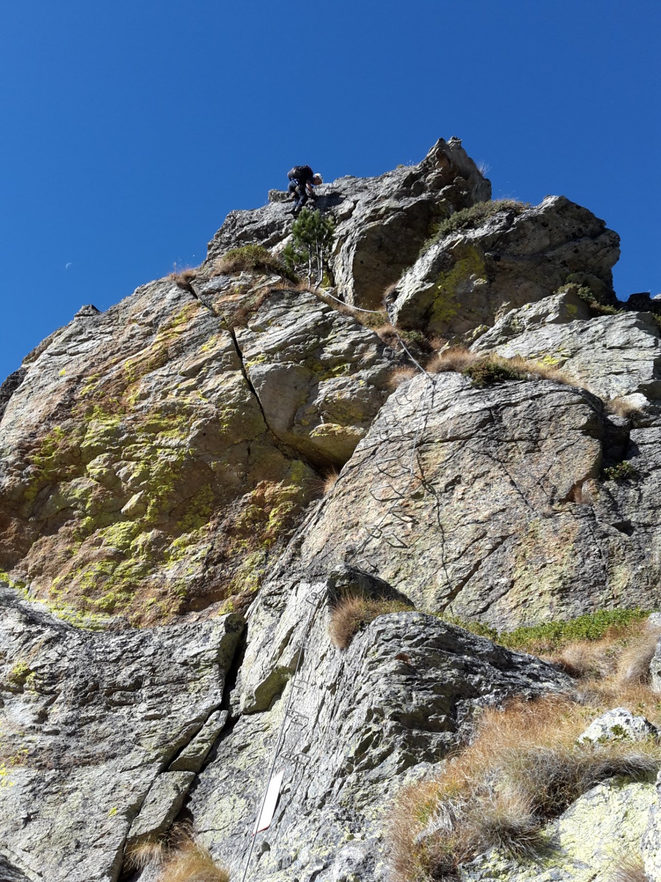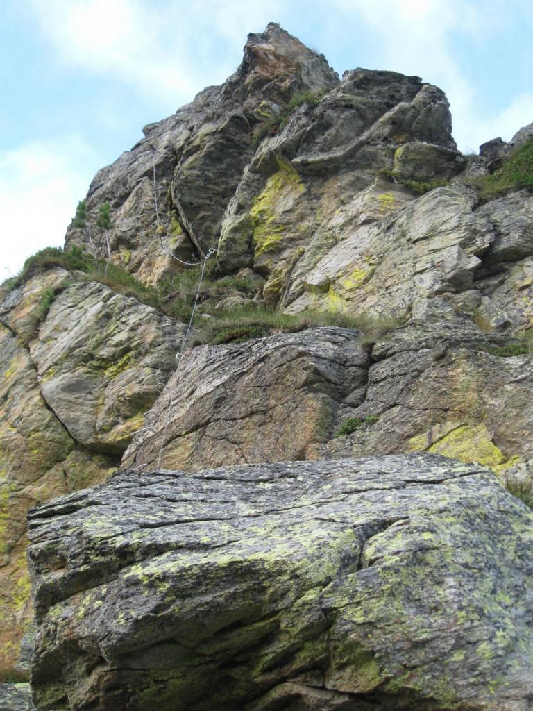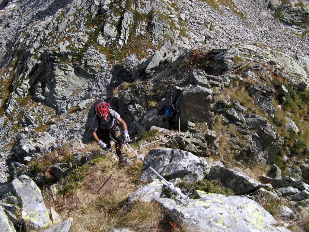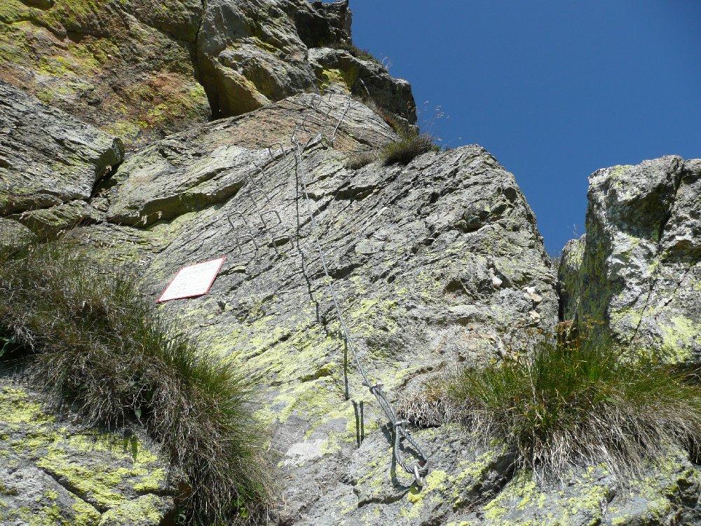 1- dal col Chardon 2220 alla q. 2320~, (sviluppo 250 m.) “via ferrata-difficile”, dove è necessario il set da ferrata.