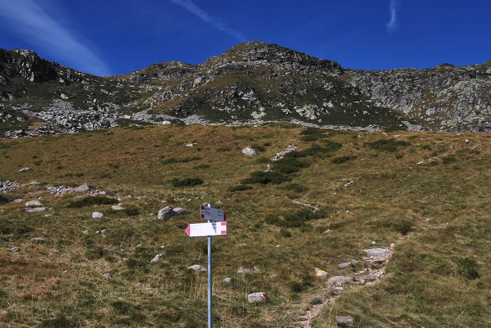 E’ una gita parecchio tosta: vero che si svolge principalmente su terreno erboso ma – come giustamente evidenziato da lussi2003 – le alzate sono per giganti. Fortunatamente la traccia del sentiero è sempre visibile, anche se ogni tanto sembra sparire; i bolli blu, che iniziano passato il pianoro con il Lago Rosso, sono veramente provvidenziali e sono quelli che guidano in vetta, perché le tacche bianco-rosse-gialle, fittissime all’inizio, terminano di colpo al Col Chardon all’imbocco della ferrata; dopo di queste rimane solo qualche vago segno.