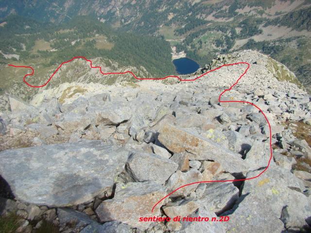 Seguito l’itinerario proposto saliti da Pian Coumarial per il rif. Coda sent. n.3 e poi n.3A e poco prima del colletto sul n.3A attrezzato fino al Mars. La discesa per il n.2D che percorre la pietraia sino all’alpe Pian Dou Juc e qui la non felice decisione di fare la cresta della Leretta (fatta tante volte in invernale) da non fare perché non vi è’ un sentiero e si “galleggia” sui rododendri fino all’Alpe Leretta. Seguire il sentiero segnato.