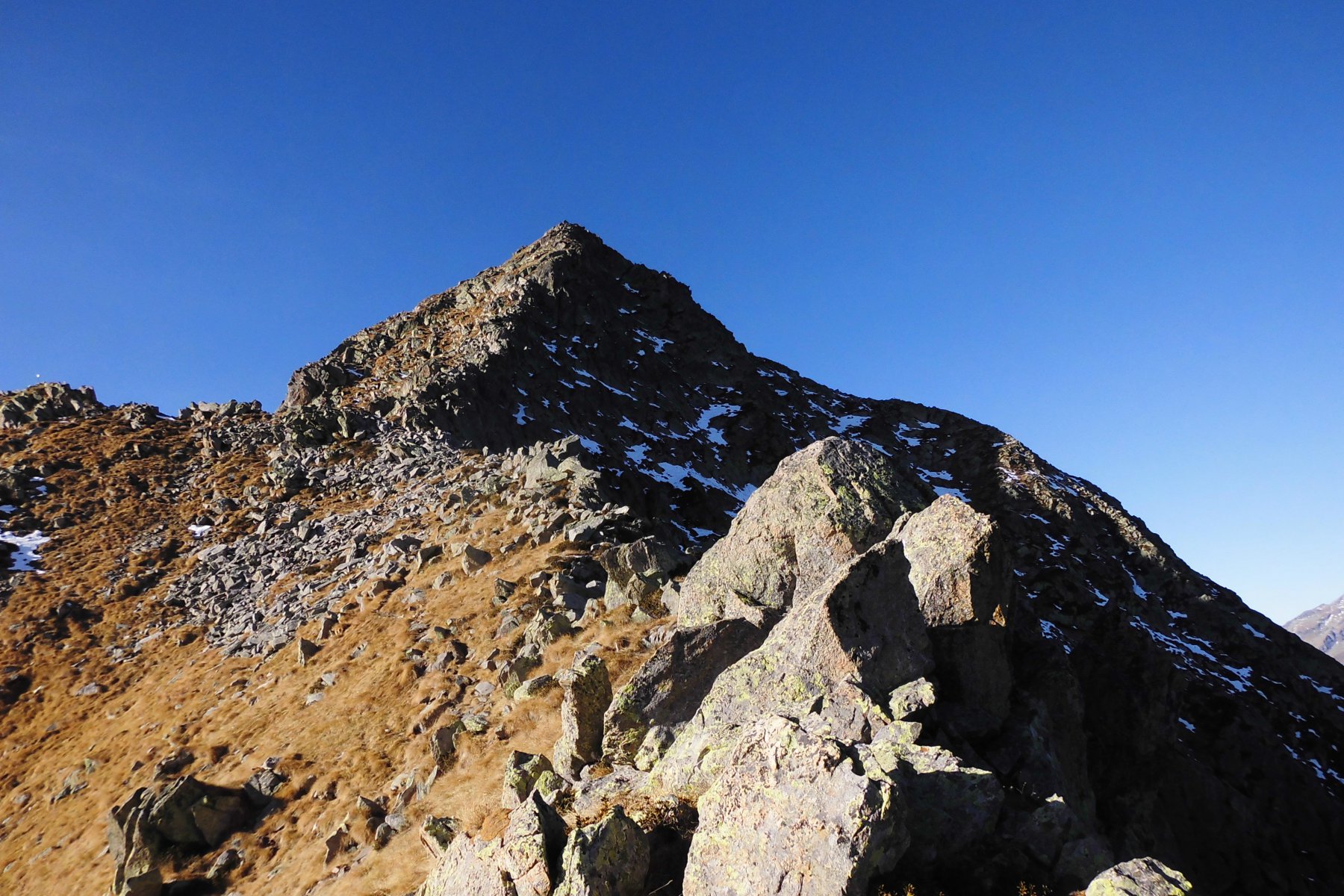 Si prosegue poi in direzione ovest ancora su facile sentiero e/o buona traccia appena al di sotto la cresta fino a raggiungere la vetta (m. 2600).
