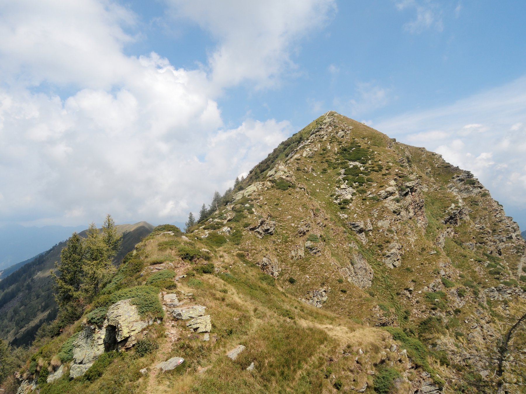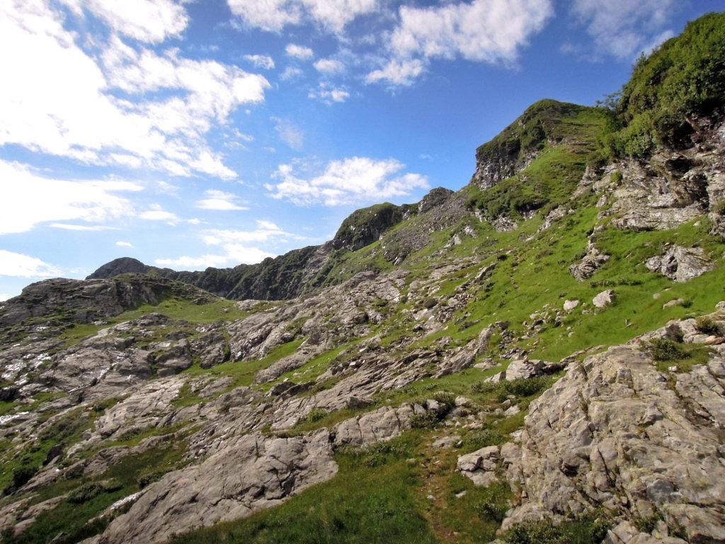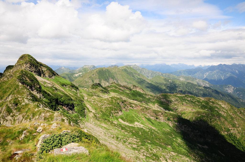 Si percorre quindi in direzione Est la panoramica cresta, con alcuni tratti esposti, seguendo il sentiero ben tracciato che evita le maggiori asperità abbassandosi ora sul lato di Pogallo ora su quello di Finero.