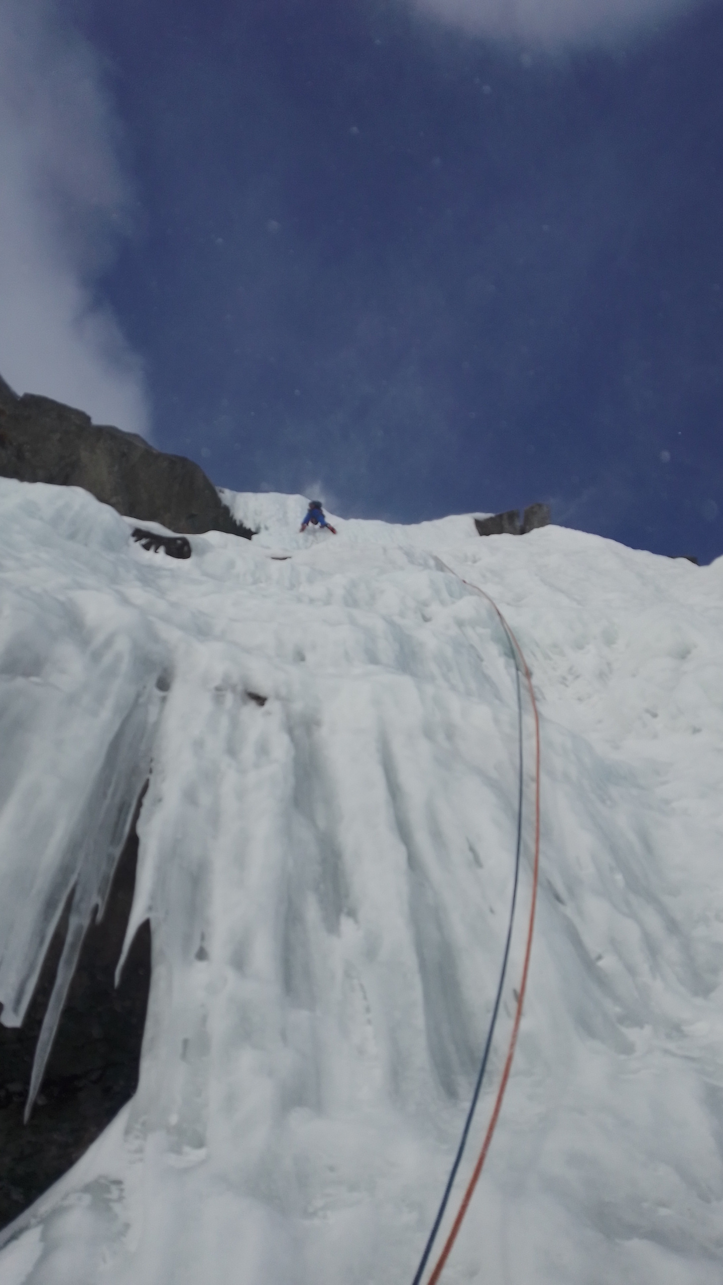 Naturalmente è anche possibile salire solo la colata e poi scendere: soste da costruire.