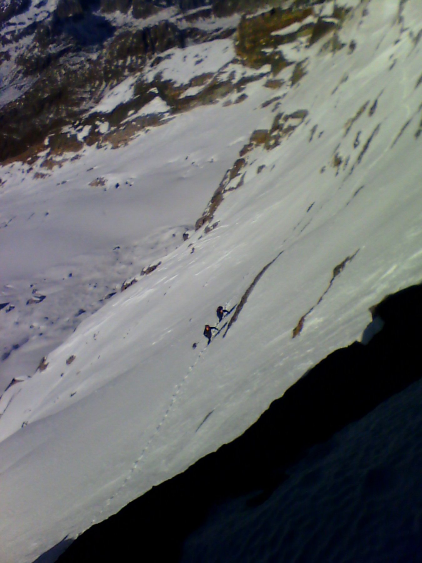 Salita ben visibile dal basso, ma la discesa dalla Francia no. Attenzione, che la salita (e la discesa!!) può diventare una trappola molto pericolosa in caso di nevicata, il manto deve essere assolutamente stabile sia in salita che in discesa. Consiglierei di andarci solo con condizioni ultrastabili. La nevicata prevista per sabato può cambiare tutto.