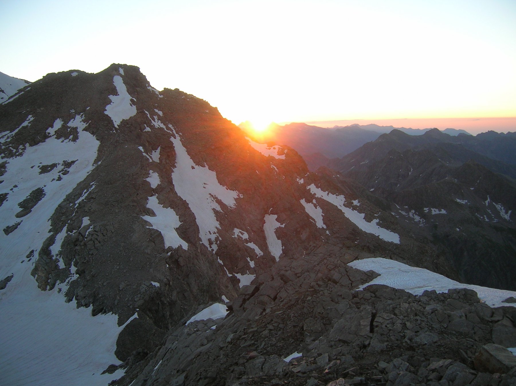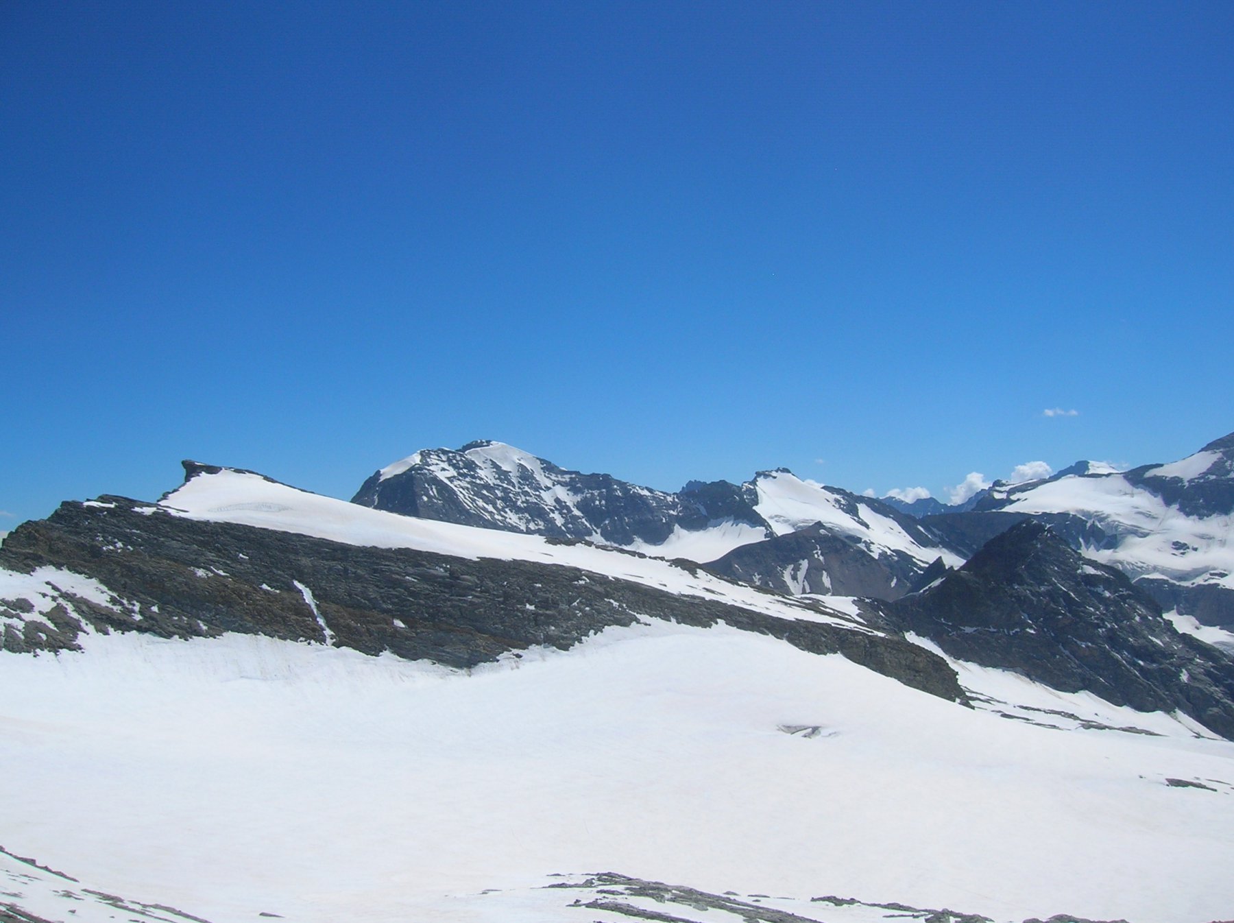 La seconda possibilità è traversare lungamente in direzione sud sul vasto ghiacciaio francese, aggirare l’evidente prua rocciosa della Punta Francesetti e salire alle Cime di Piatou (3298m, risalita di circa 200m dal ghiacciaio) e divallare in Sea pernottando eventualmente al bivacco Soardi-Fassero (2297m). Quindi a Forno. Giro lunghissimo ma privo di difficoltà o pericoli oggettivi.