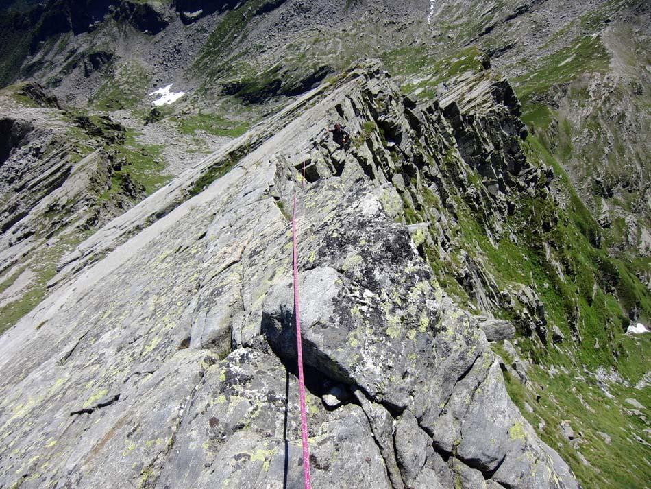 Se si segue quest’ultima fedelmente sul filo i passaggi sono spesso esposti fino al II ed anche III grado.
