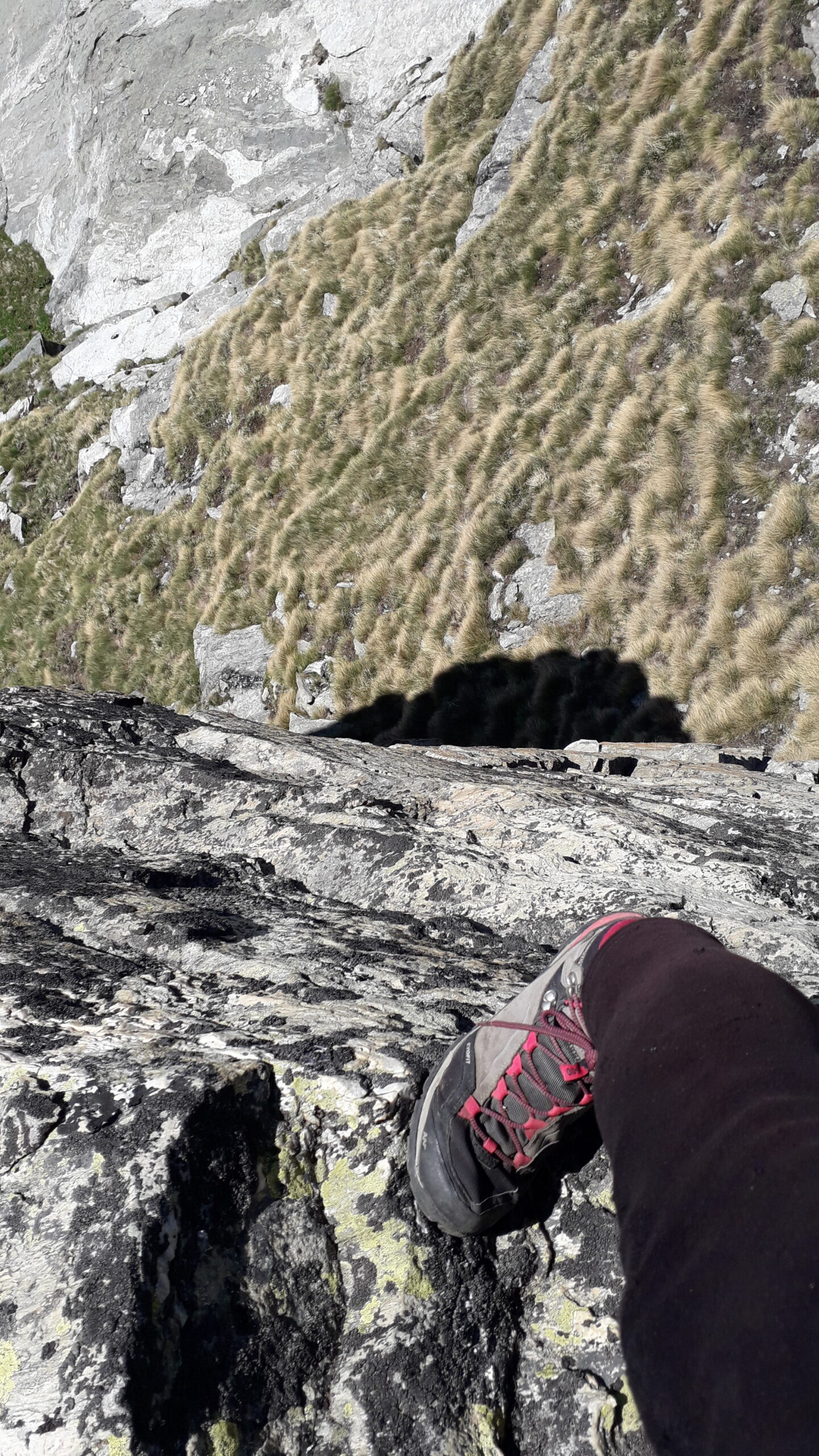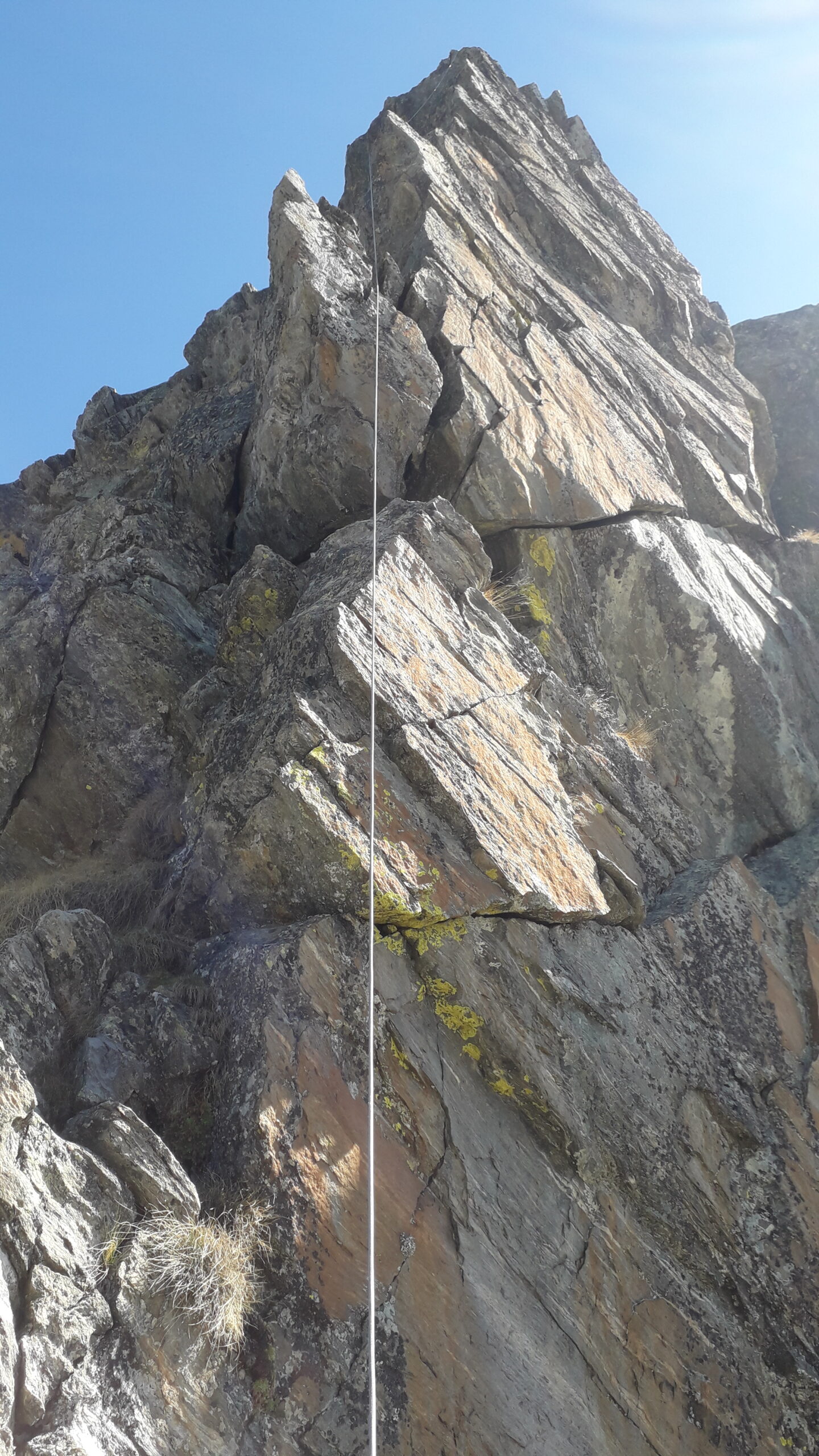 Per goderlo appieno piazzato una corda sul sommo senza rischiare nulla. Individuato l’unico chiodo presente in via prima delle divertenti placche finali nell’unico tratto dove la roccia prevale sull’erba.