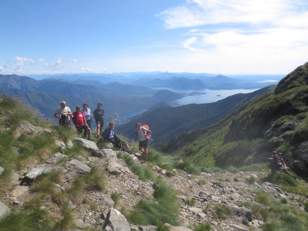 Oggi ho accompagnato in cima la signora e suoi simpatici parenti che il Massone lo vedono da casa tutti giorni ma non c’erano mai saliti. Giornata bella e fresca ma la partenza tarda e la presenza di un pur bravissimo bimbo di 5 anni hanno fatto si che arrivassimo in punta quando il sole se ne era appena andato. Sempre magnifico il panorama oltre che sui laghi, verso il Leone e le vicine montagne, mentre il Rosa e i 4000 svizzeri erano già nascosti dalle nuvole.