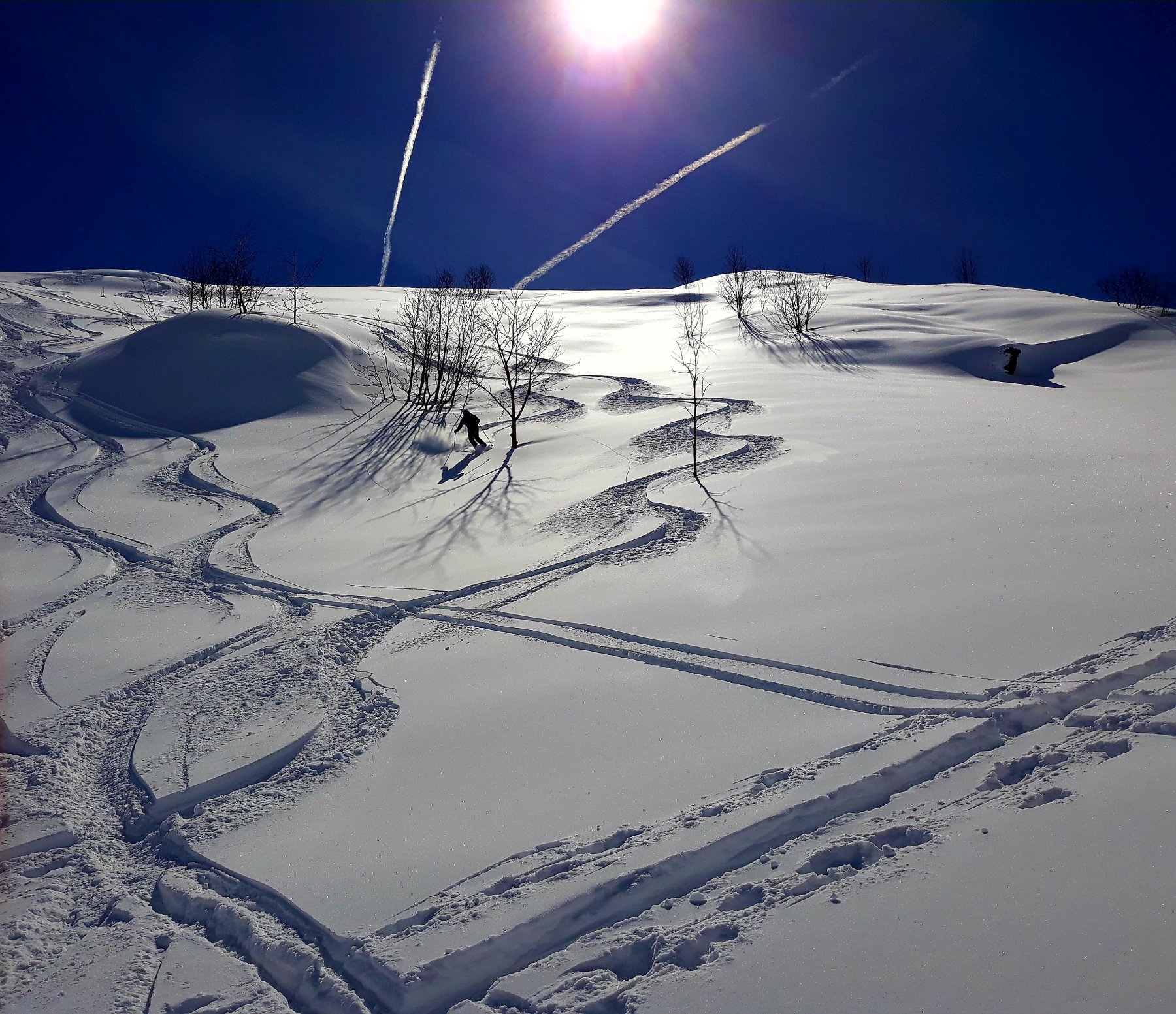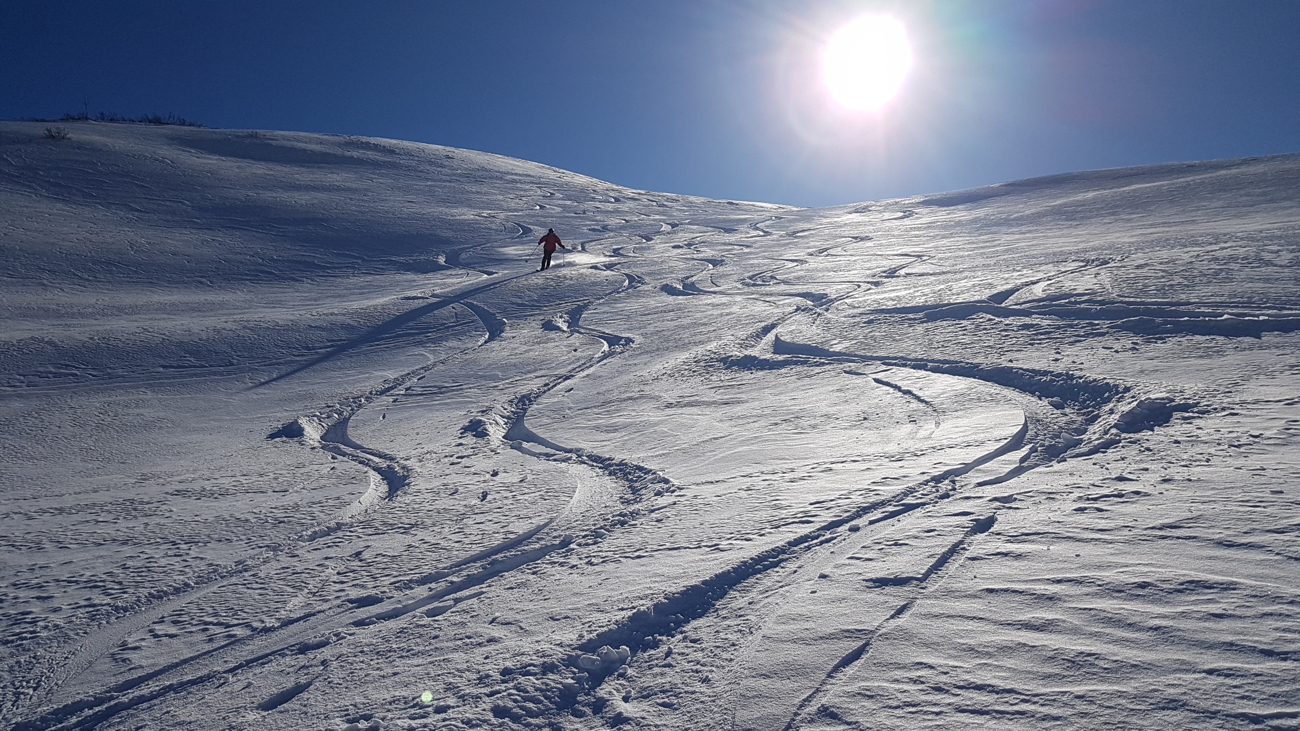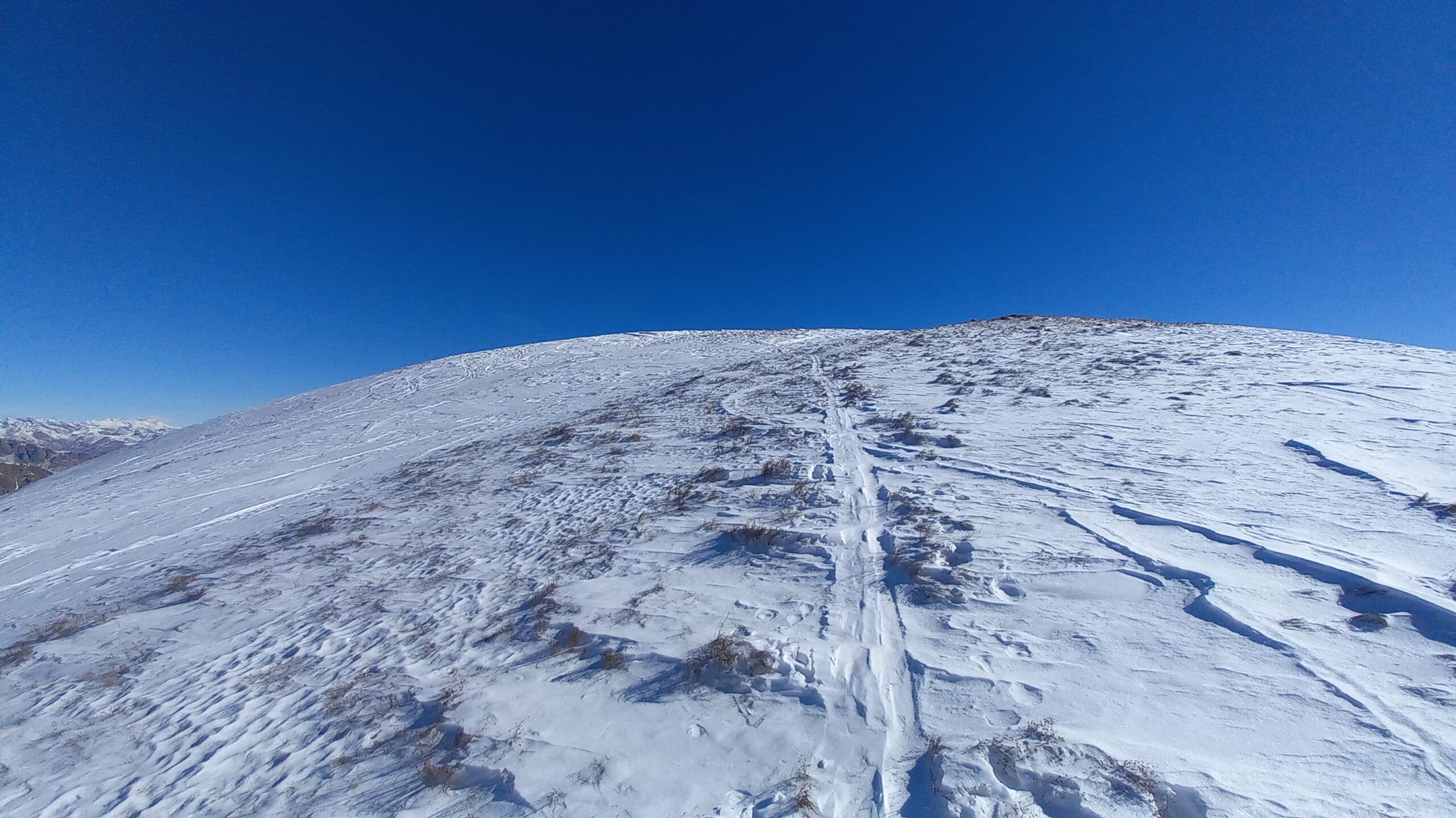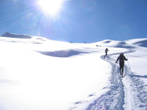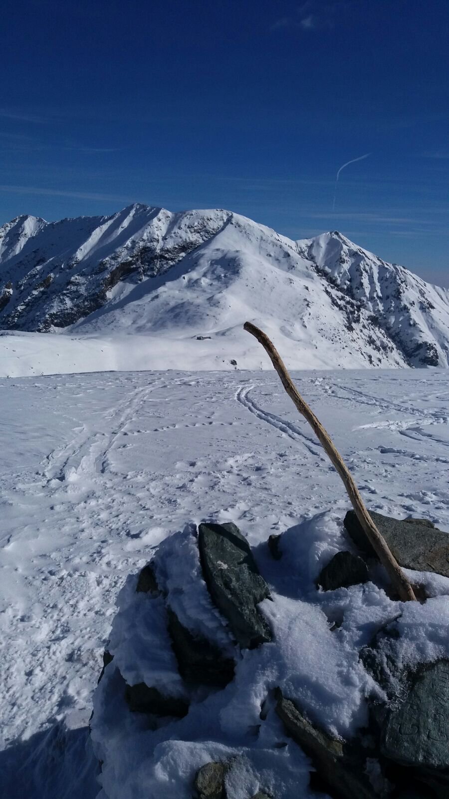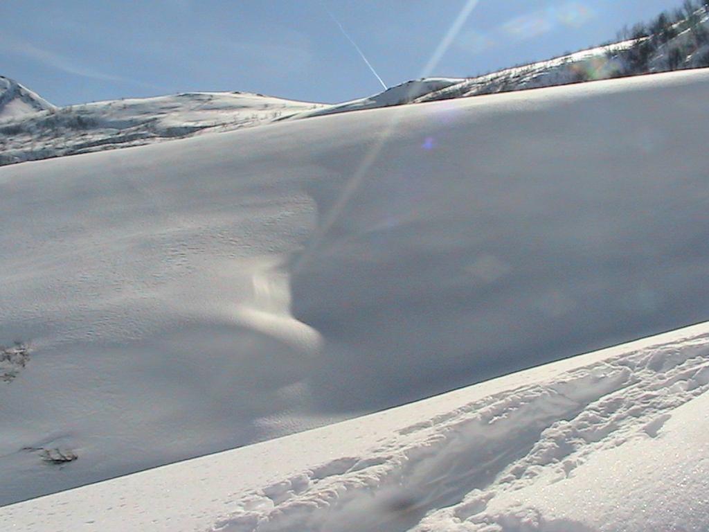 Variante: Invece di lasciare la sterrata per il Colle del Colombardo dove questa piega decisamente verso sinistra, e’ consiglibile proseguire lungo di essa per circa 50-60 metri per poi salire un ripido pendio molto piu’ aperto di quello indicato dalla relazione. Si prosegue quindi lungo il percorso del Rio di Nanta, sulla sua destra idrografica fino a ricongiungersi con il percorso originale nei prati sotto all’Alpe Pian del Luvas.