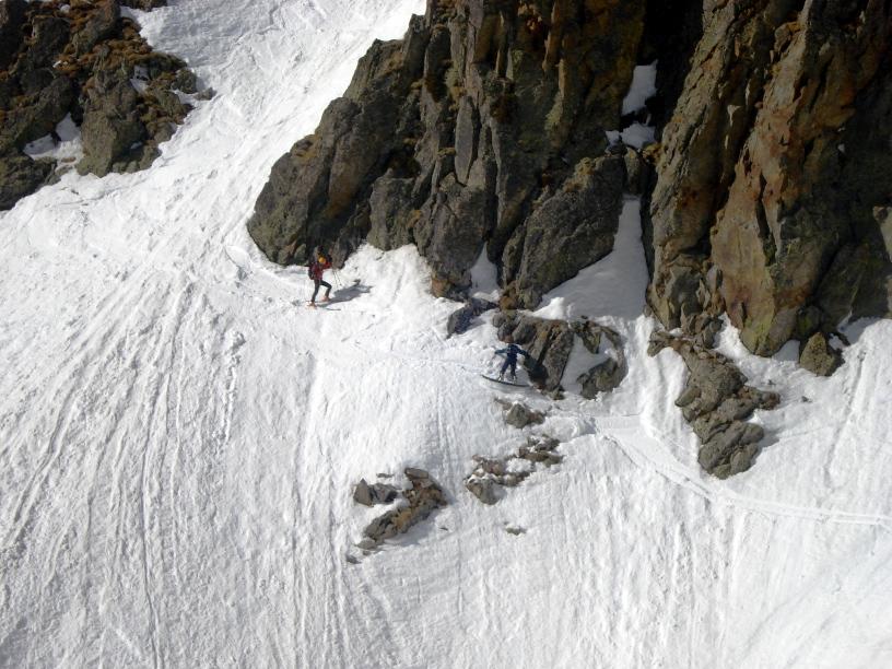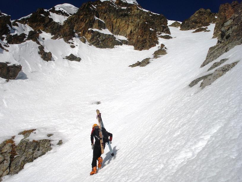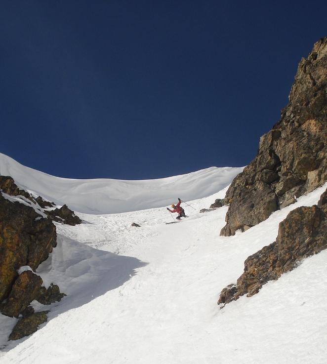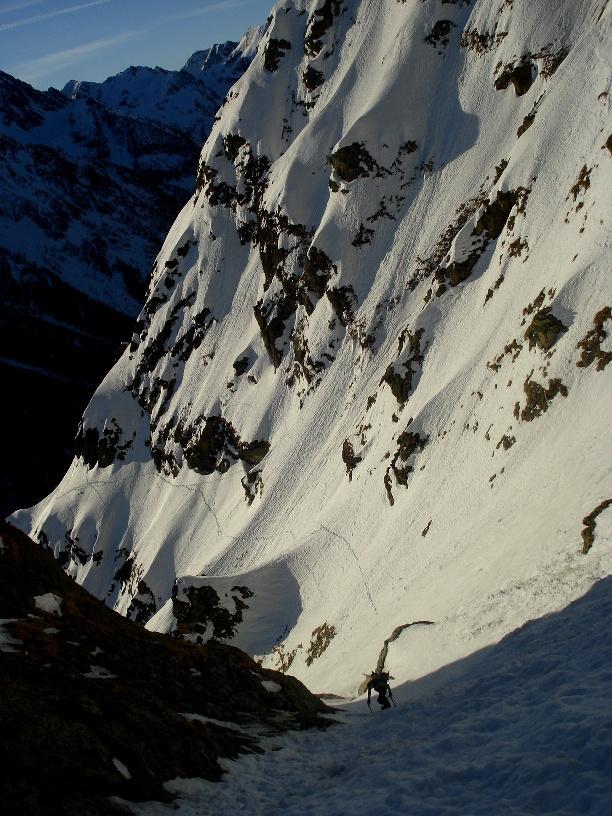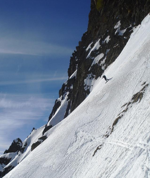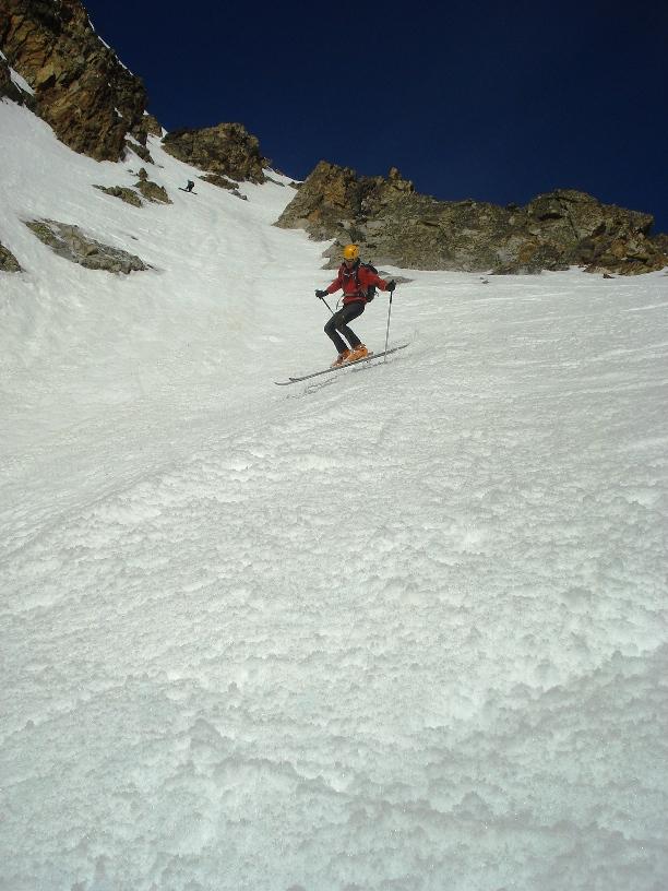 Per fare un paragone su morfologia e difficoltà sciistiche, è una discesa simile alla parete sud del Monviso, esposta e con le difficoltà concentrate nella parte alta sopra il “Ragno”.