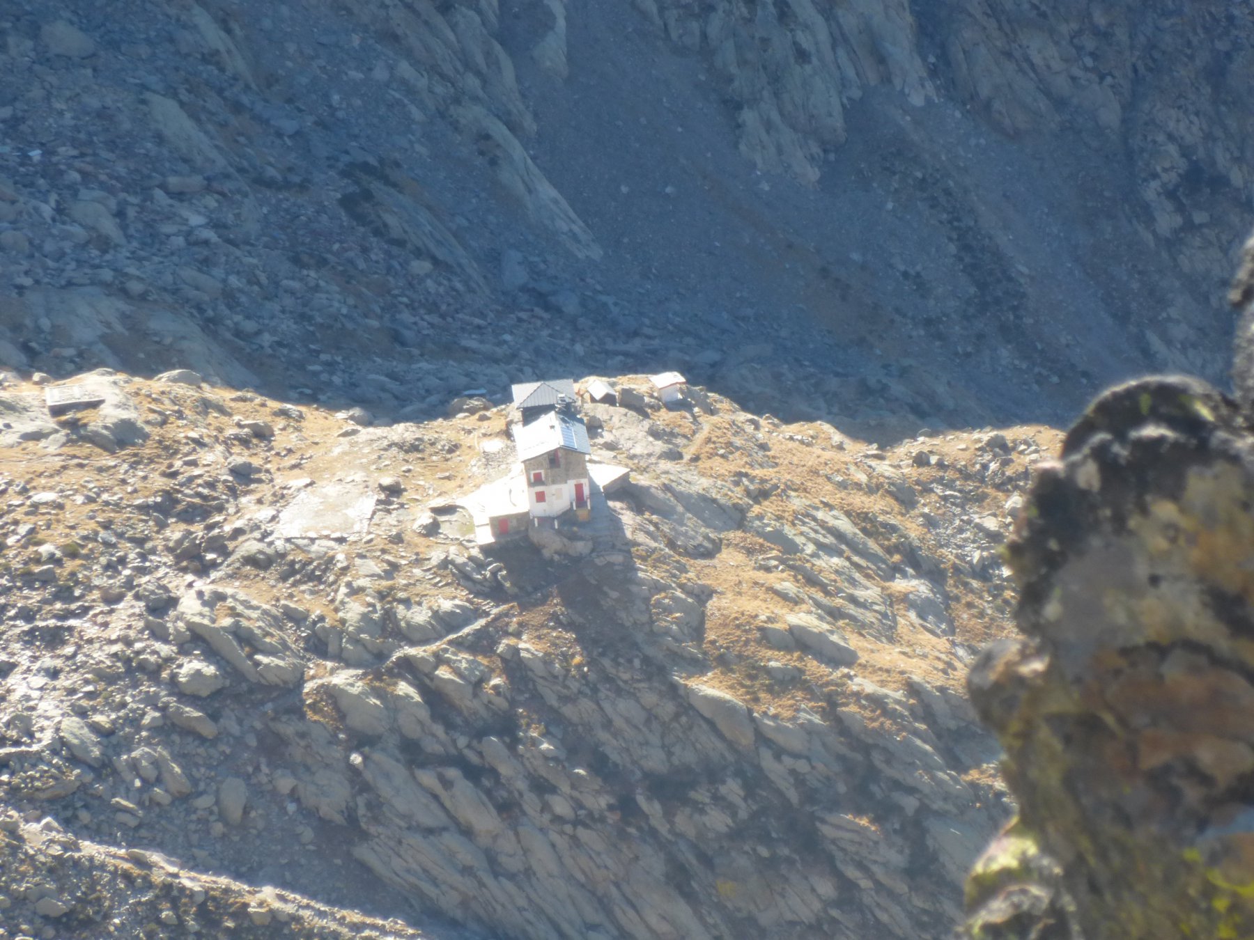 2) Variante: dalla base del torrione andare a dex ed arrivare ad un colletto che si affaccia sul canale Sud; una corda doppia di circa 10mt porta nel fondo del canale, che si risale facilmente; all’uscita un passaggio esposto (II°+) porta ad una forcellina sulla cresta, che si scavalca, scendendo nella parte terminale del pendio-canale e di qui alla cima.