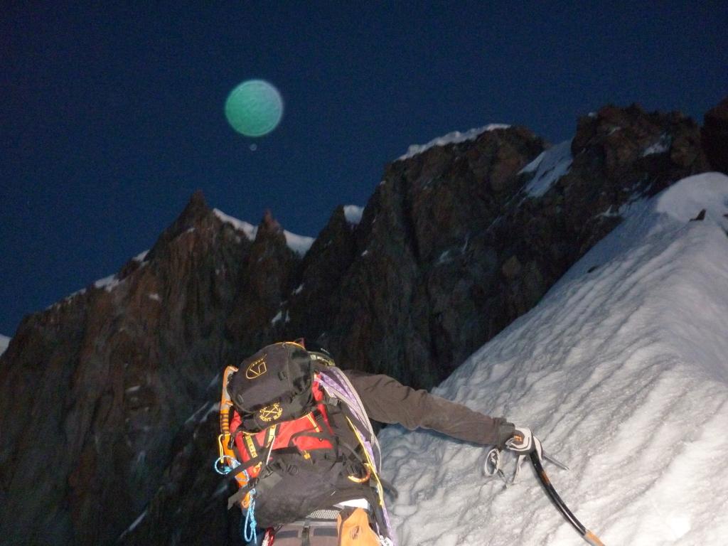partiti con poca convinzione all’1 nella bufera di vento e nella nebbia cercando a tentoni la via per attaccare la cresta, si è poi rivelata una giornata spaziale: immersi nel mondo del bianco in una giornata tersa. una cavalcata nel massiccio del bianco che lascia senza fiato. probabilmente la parte più bella è la prima parte, peccato che la si fa al buio. con fra, andrea e luchino: quando la compagnia è così, non può che andare tutto alla grande!