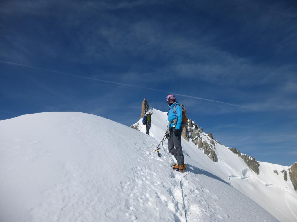 Condizioni ottime per questa super classica …….Partiti dal Torino alle 2,30, ottimo rigelo notturno, il canale di accesso alla cresta e’ tutto in neve ben gradinato, la cresta e’ ben tracciata lungo i tratti nevosi, i tratti di roccia tutti asciutti. Dalla spalla proseguito su facile cresta fino in vetta al Maudit. Visto il grande affollamento al colle del Mount Maudit, siamo ridiscesi lungo la cresta appena salita fino alla spalla per poi prendere la traccia di discesa che in breve si collega con la normale al Bianco.