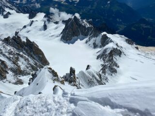 Un altra giornata condotta egregiamente. Partiti con la prima benna da Curma alle 6.30. Alle 7 io in arte picchiatello e la nostra regina mdf la Vale mettiamo piede sul ghiaccio un piccolo brieffing e la giornata ha inizio! Ore 12.20 vetta del Maudit. Non dico nulla se non che per lei era sua prima volta su un cresta del genere!! Che sia una forza della natura è dato per scontato ma smontarmi il muso così sulla via del ritorno però no.. saliti e scesi in modo disinvolto alle 16. Eravamo al rifugio Torino col mezzo di birra in mano!!! Gli mdf una certezza..