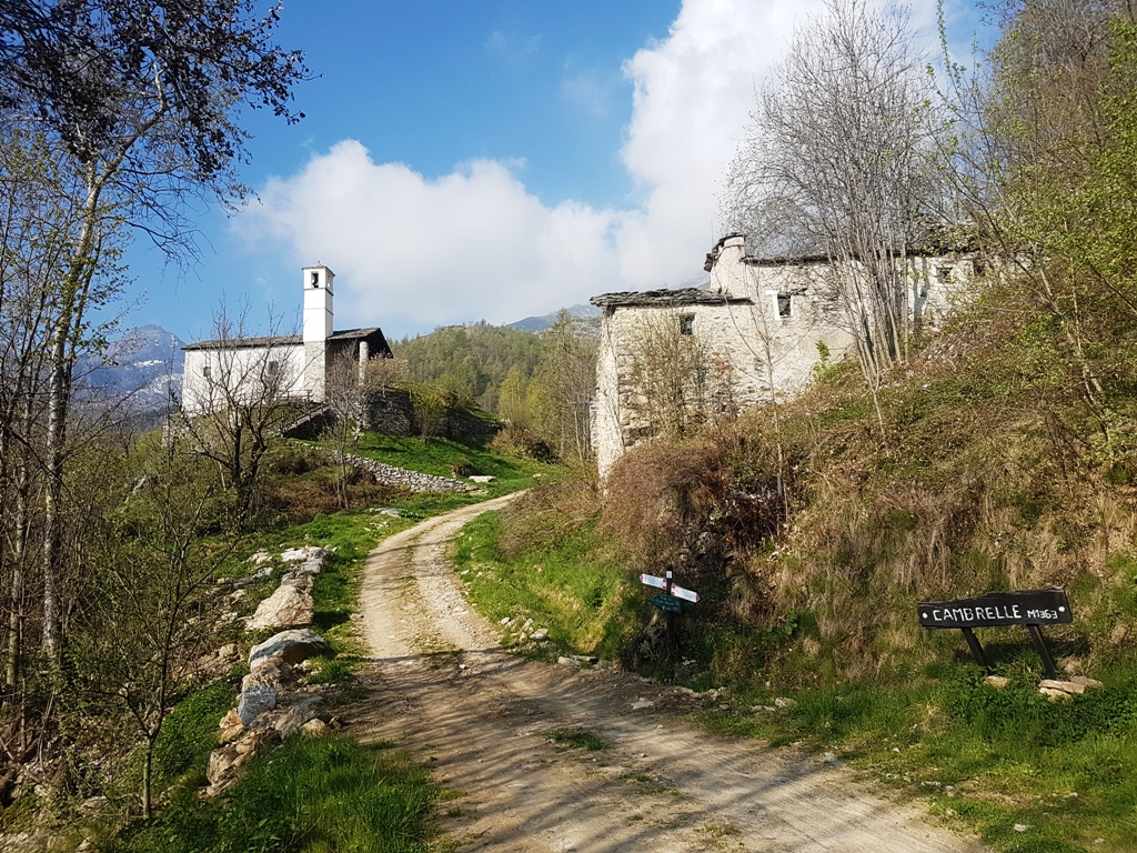 Dal tornante a monte di Porcili, percorrere il breve tratto di nuova pista sterrata, poi su sentiero raggiungere Cambrelle, risalire il vallone fino alle baite quota 1411 m. Svoltare a sinistra, abbassarsi verso il torrente attraversare il ponte in legno, risalire il sentiero sulla sponda opposta per una cinquantina di metri poi deviare a sinistra e con un lungo traverso in salita si sale il versante boscoso, sbucando sulla dorsale a quota 1482 m. Salire a destra la dorsale giungendo in breve alle baite Bianasso di Sotto 1581 m. Dal retro delle baite risalire un pianoro tenendo come riferimento una grossa torretta in pietra; raggiuntola mantenere lo stesso senso di marcia puntando ad una poco marcata dorsale erbosa vicina al fondo del vallone, da questa puntare al rio, attraversalo seguendo il sentiero che con tratto pianeggiante a sinistra, ci porta su una dorsale erbosa. Piegare in salita a destra giungendo ad una piccola baita solitaria; da questa con un nuovo traverso quasi pianeggiante si arriva ad un poco marcato dosso erboso.