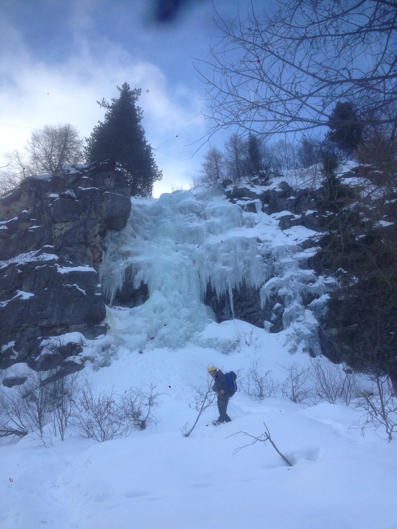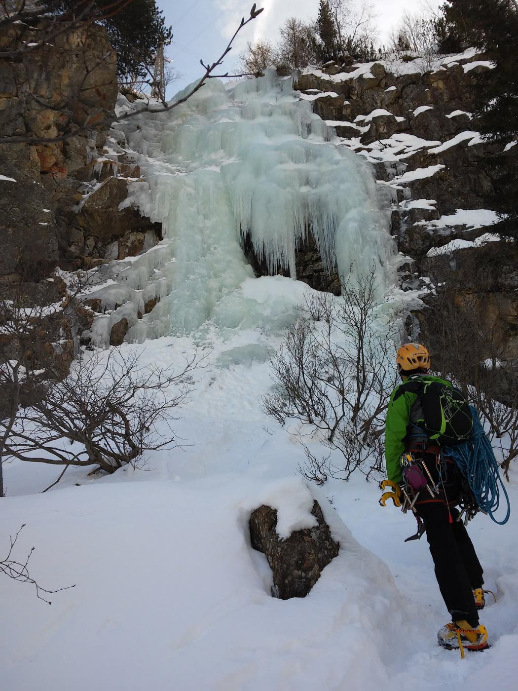 Dall'uscita di Terrordacty, in salita verso sx si incontra il sentiero per il rif.Aviolo, lo si segue e in 5 min. si incontra la simpatica colata.