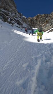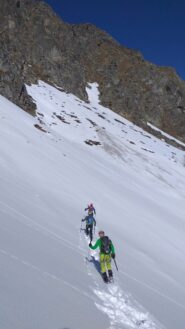 All’uscita del canale è anche possibile accedere in andata e ritorno alla cima del Mont Méabé propriamente detto, che si trova a destra (nord).