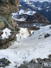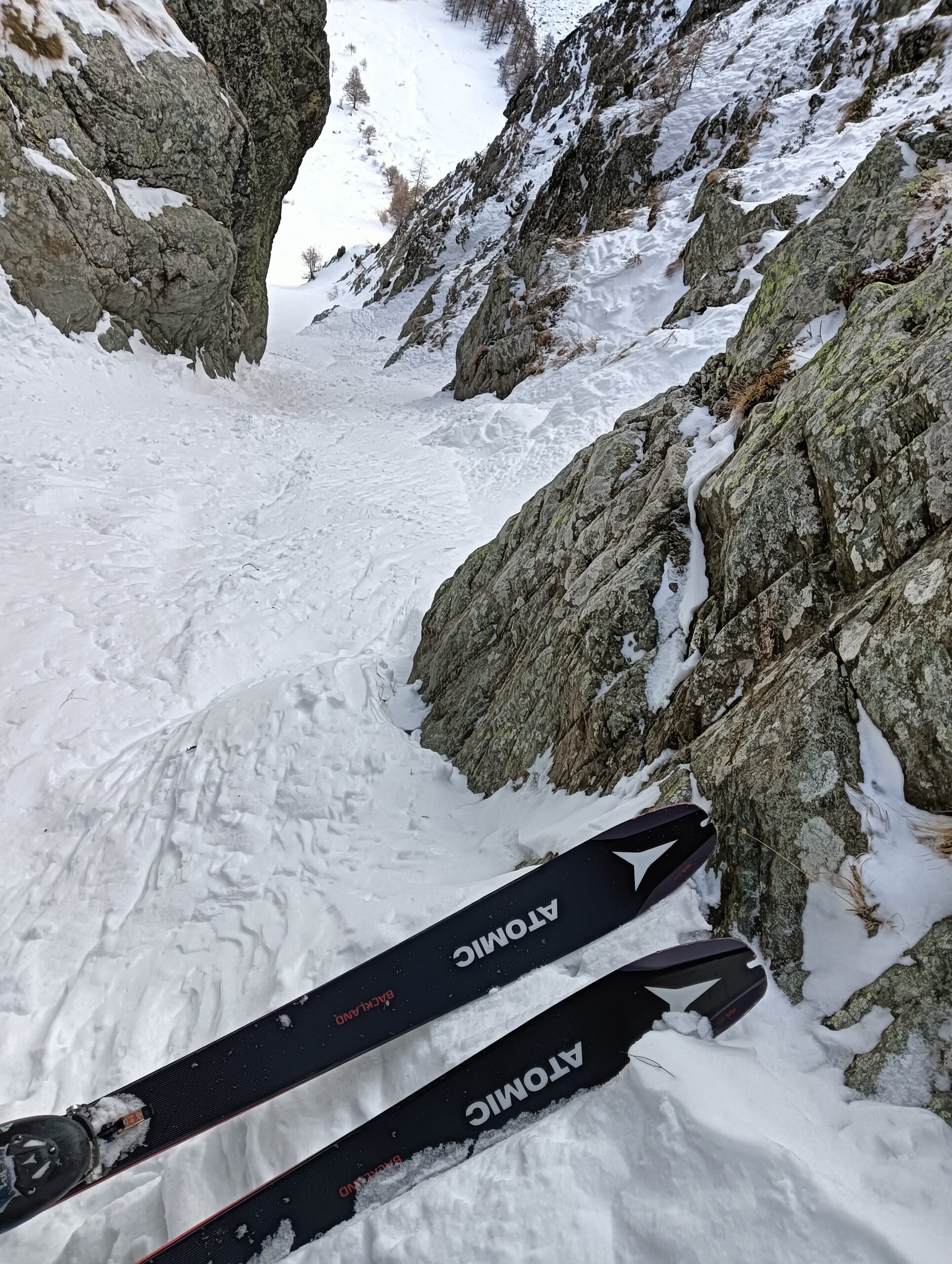Dall’arrivo della seggiovia Collet si prosegue tagliando in quota finché il canale non diventa evidente…