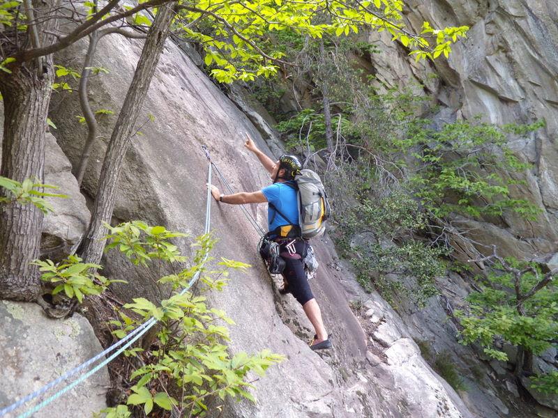 Sviluppo totale: 280 m Difficoltà: D+ Discesa: Doppie 25 m, poi a piedi nel canale