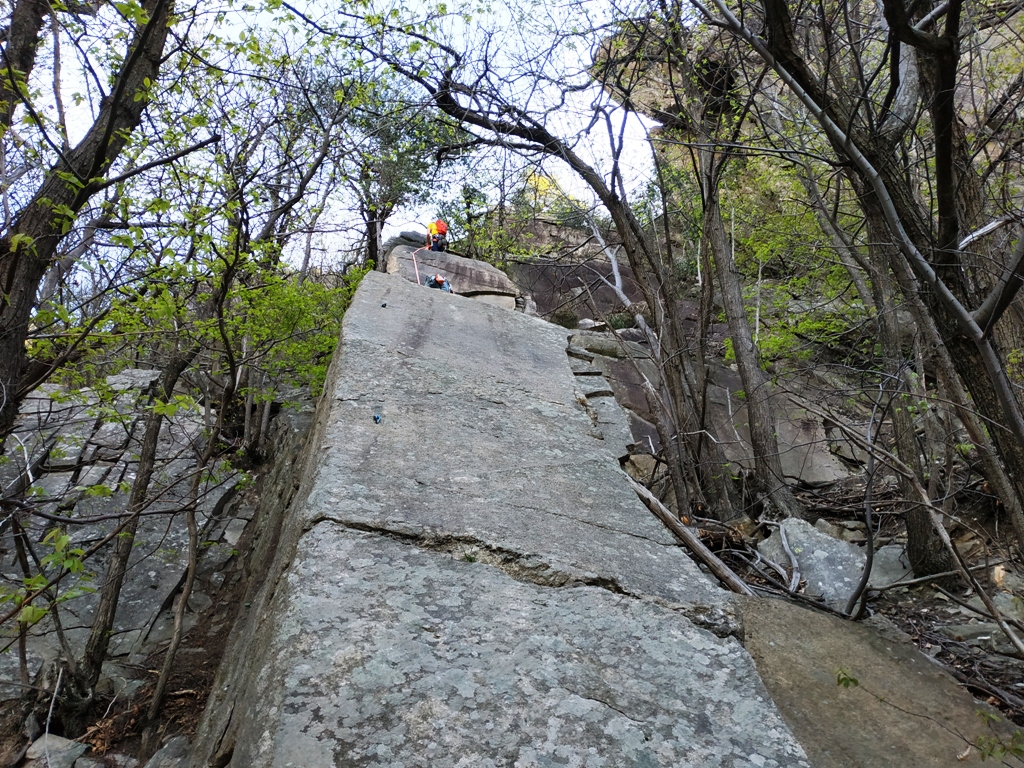 Sui passi delicati di un paio di tiri si sono sono già ben espressi alcuni dei recenti salitori. Abbiamo usato 2 mezze da 30 che sono un po’ al limite ma comunque bastevoli. Solo la prima lunghezza di ciascuna via supera di poco i 30 m ma le partenze sono molto facili per cui basta portarsi un po’ su di qualche metro mentre si assicura per dare più corda al primo. Oggi eravamo 3 cordate alla partenza e ci si è trovati subito in sintonia. Proseguito sulle placche rosse per un totale di 14 tiri complessivi. Bella chiodatura senza il minimo attrito, non abbiamo integrato nulla. Per scendere alla fine della prima via ci sono 2 calate parallele e belle verticali che ricalcano il monotiro Millenium Bug, una cordata invece si è calata qualche metro prima complicandosi un po’ la vita in mezzo agli arbusti.