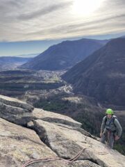 Giornata ventosa; rubata una mattinata in compagnia di Federico per questa salita di media difficoltà: via lunga + via Michelin Battu e poi discesa a piedi. Un bel momento di relax in compagnia di un giovane promettente.