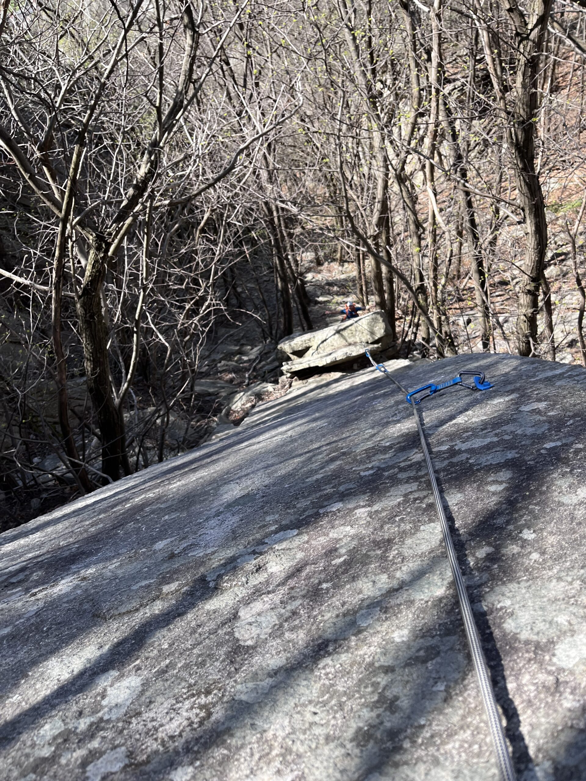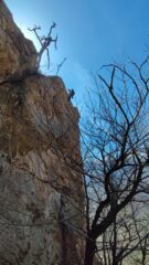 Per la calata basta una sola mezza corda da 60 mt doppiata.
