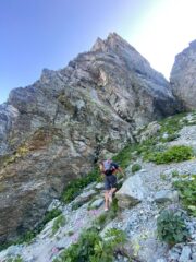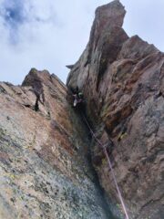 Bellissima salita,ottima relazione,roccia buona,vero alpinismo classico.Con Friends ci si protegge bene,due chiodi e un martello in questi terreni non devono mai mancare secondo me.Allungare le protezioni è consigliabile.