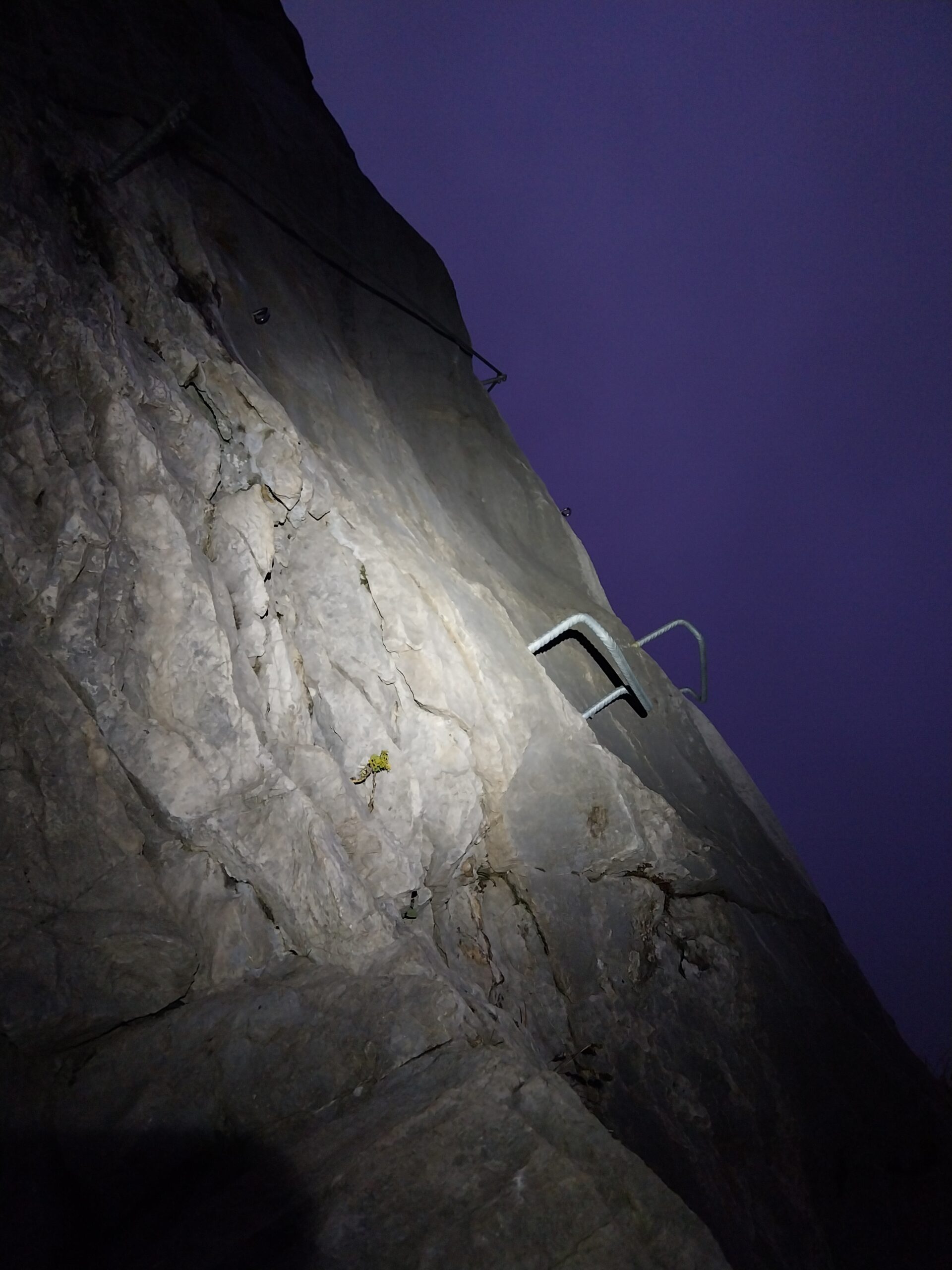 Mattina uggiosa e nebbiosa, il tempo ha tenuto fino in cima e su buona parte della discesa, poi ha piovigginato ma ormai no problem. Sceso dal sentiero del San Martino per risparmiare le ginocchia. In ferrata tutto regolare.
