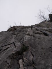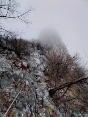 Mattinata nuvolosa, con pioggia nella parte alta, ma senza particolari problemi. Attrezzatura tutta in ordine. Discesa verso il sentiero del San Martino