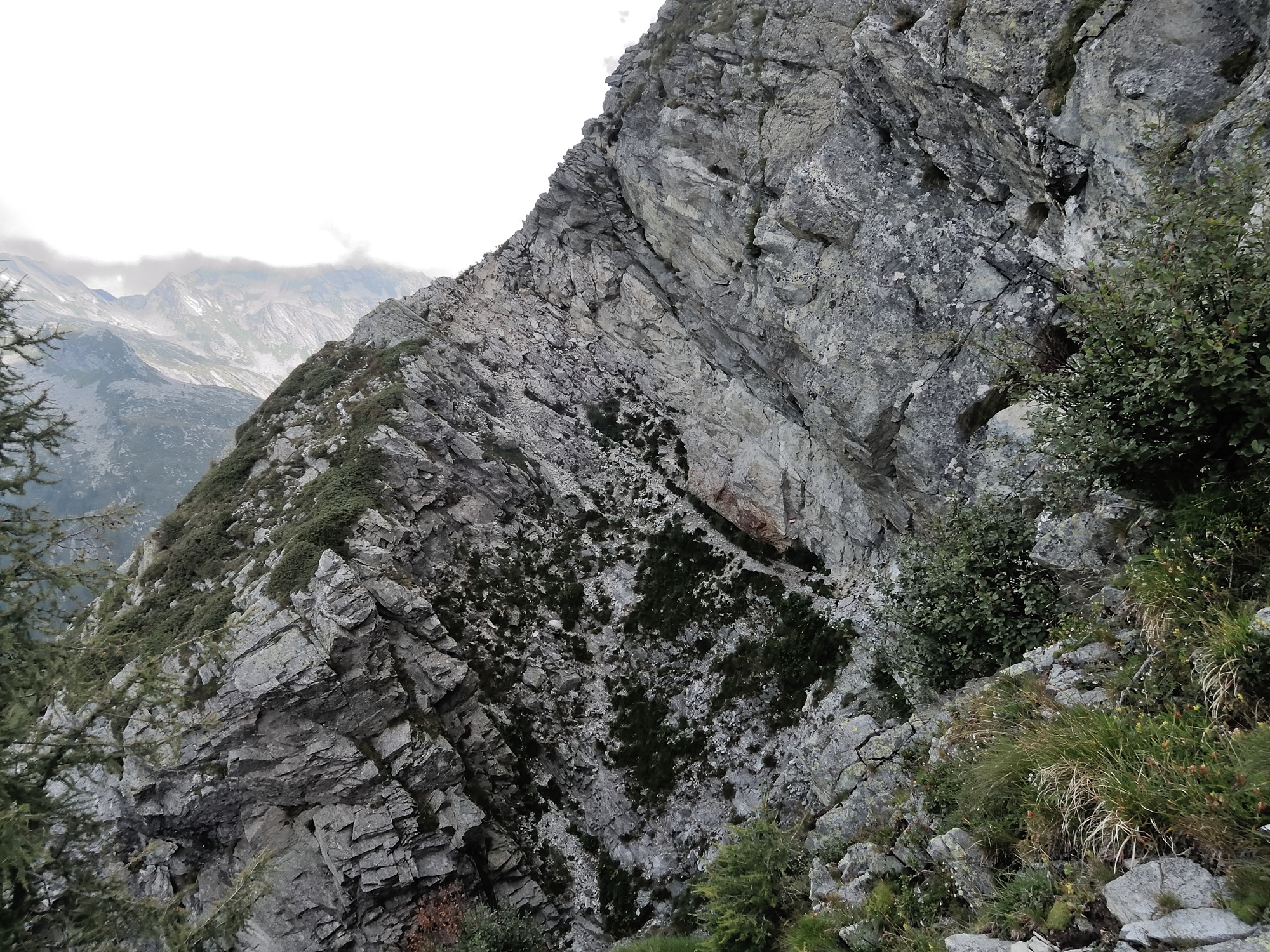 Percorso dell’andata per Forcola di Larecchio, Sentiero del “Larice Secco”, Bocchetta di Ragozzo, quindi risalita della pietraia sotto la parete Nord-Ovest del Pizzo del Fornale; scendiamo quindi di qualche decina di metri sul versante della Valle Onsernone per raggiungere diagonalmente il Passo di Loccia Carneria e salire in vetta. Rispetto all’itinerario indicato che si svolge interamente in Valle Onsernone, questa variante consente di risparmiare circa 200 m di dislivello; la percorrenza è comunque più difficoltosa per i lunghi tratti senza sentiero lungo la mezzacosta del versante Agrasino. Dopo il passo Campolatte la traccia prosegue evidente verso la Bocchetta di Ragozzo, fino ad un canalone franoso che rappresenta il passaggio più critico; in passato si tentò anche di agevolarne la percorrenza con la posa di cavetti e catene, ormai scomparsi per l’impossibilità di realizzare validi ancoraggi. Dopo il passaggio in questione le tracce spariscono ma non è difficile mantenere la direzione procedendo a mezzacosta fino ad incontrare nuovamente il sentiero ormai in vista della bocchetta. Procediamo ancora diagonalmente fino ad aggirare lo sperone roccioso del Pizzo del Fornale; quindi, saliamo lungo la pietraia e scolliniamo verso la Valle Onsernone per arrivare in cima come consueto. In discesa seguiamo l’itinerario classico per Passo dell’Omo, Alpe Ragozzo, alpe Soglio, Alpe Galeria e Passo di Fontanalba. Il sentiero dal Passo dell’Omo verso Ragozzo all’inizio è poco visibile; abbassandosi di un centinaio di metri appare evidente e pulito come per tutto il resto del percorso di discesa.
