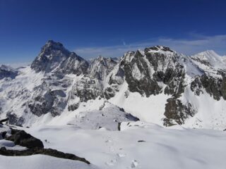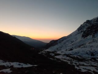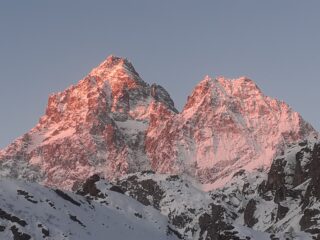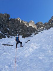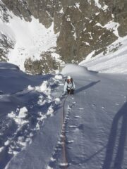 Neve dai 2100 in su, al mattino con ottimo rigelo e portante fino all’attacco del canale. Non servono racchette da neve. Condizioni nel canale molto buone, neve ben trasformata. Divertente il passaggino su roccia per superare la fessura, da li si è quasi in vetta ma nell’ultimo pezzo la neve è meno consistente e si sfonda un po. Gran bella giornata con Silvia alla sua prima salita su canale di neve!
