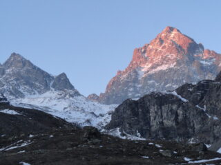 Non abbiamo portato le ciastre, forse una scelta sbagliata, ma la ferraglia aveva già il suo peso. La normale dal colle Luisas al Granero presenta qua e là qualche chiazza di neve. Un saluto alla famiglia che stava salendo al colle Luisas e ai ripidisti che hanno sceso il Couloir Bianco (buone condizioni)