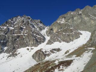 Canale non più in condizioni. Da circa i 2200, tenendosi a sx la neve è continua, mentre a dx seguendo il bel sentiero si evita. In vista delle casermette si trova la neve, un po sfondosa. Il conoide i presenta ben innevato, ma è solo un’illusione: il canale è secco, salvo la parte alta.