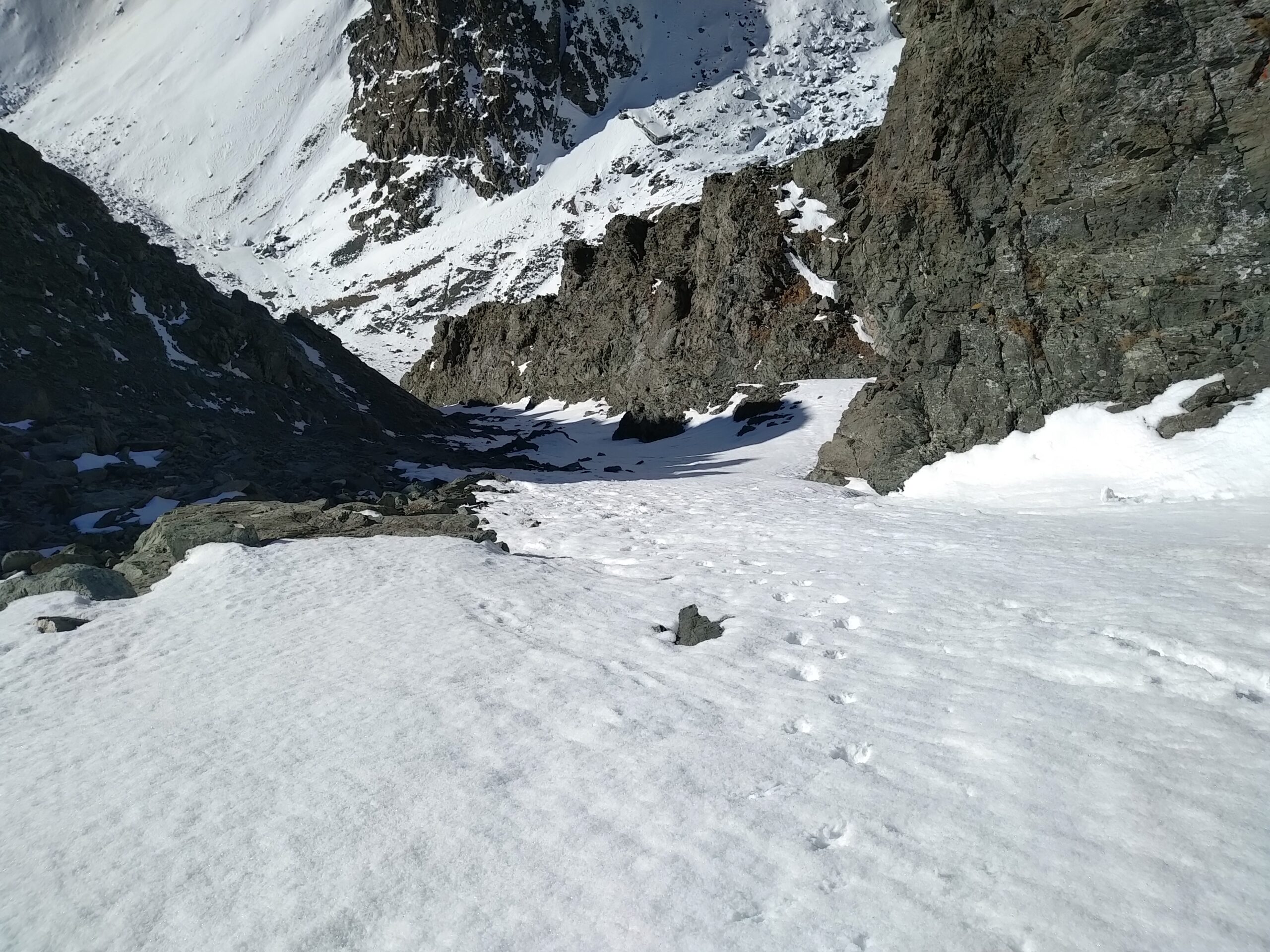 Canale in buone condizioni,tutta la salita su neve dura,solo nell’ultima parte neve assente.
