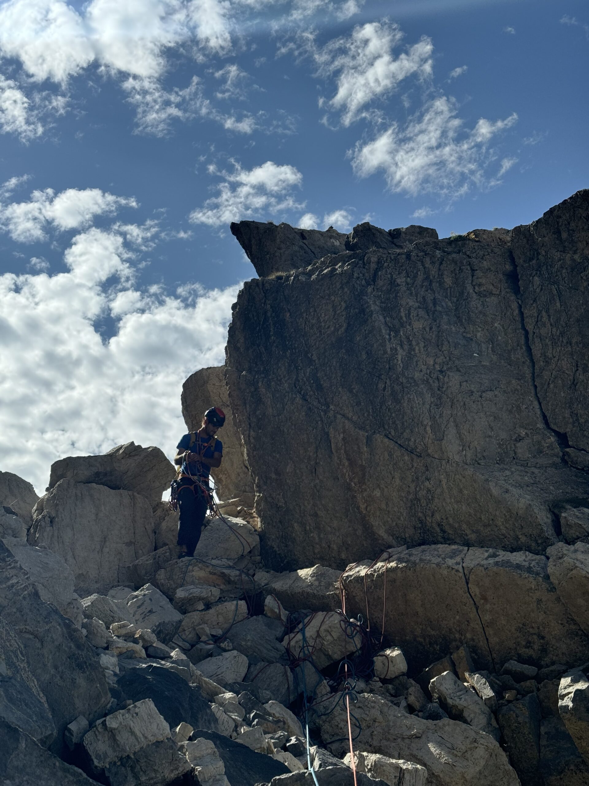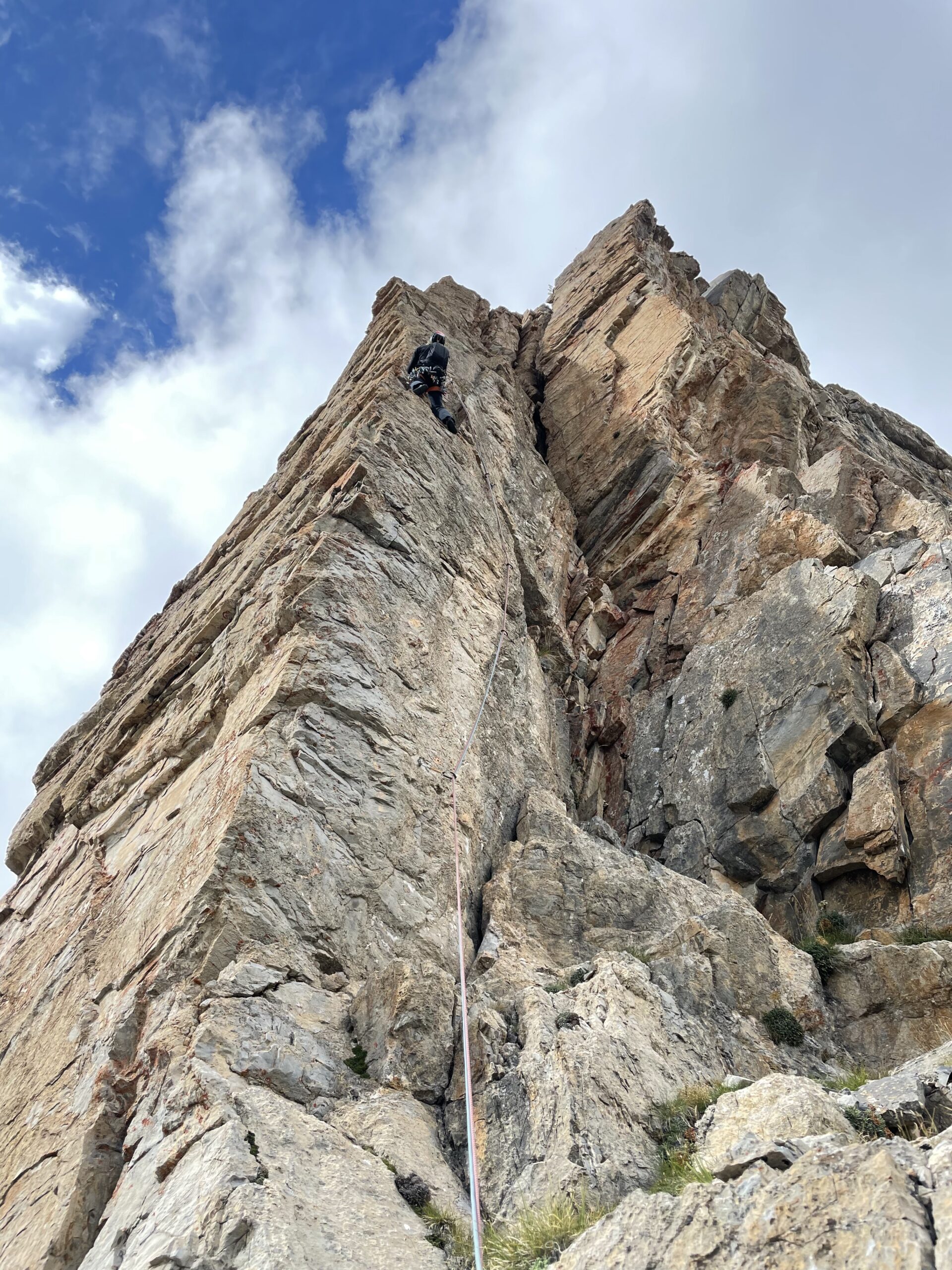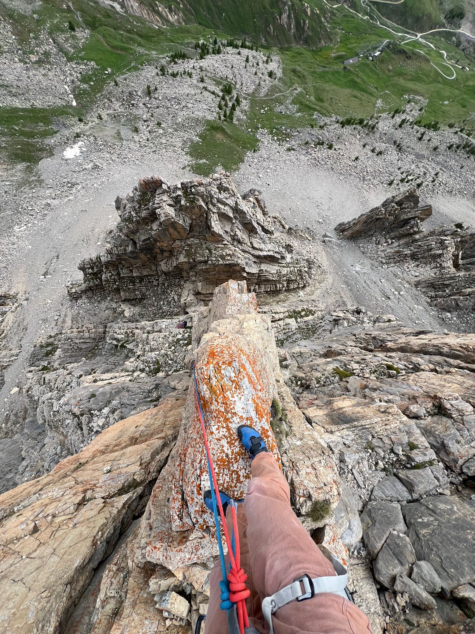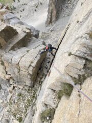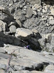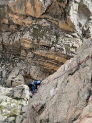 Dalla punta del torrione scendere a piedi al successivo 25 mt.