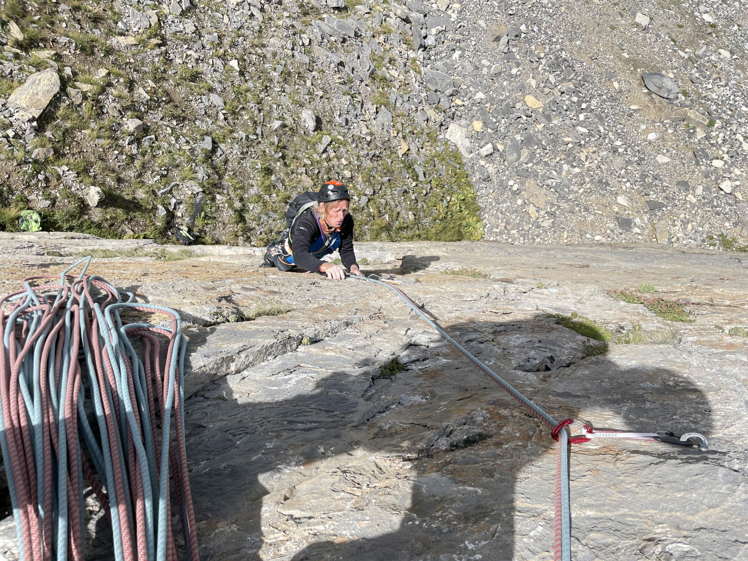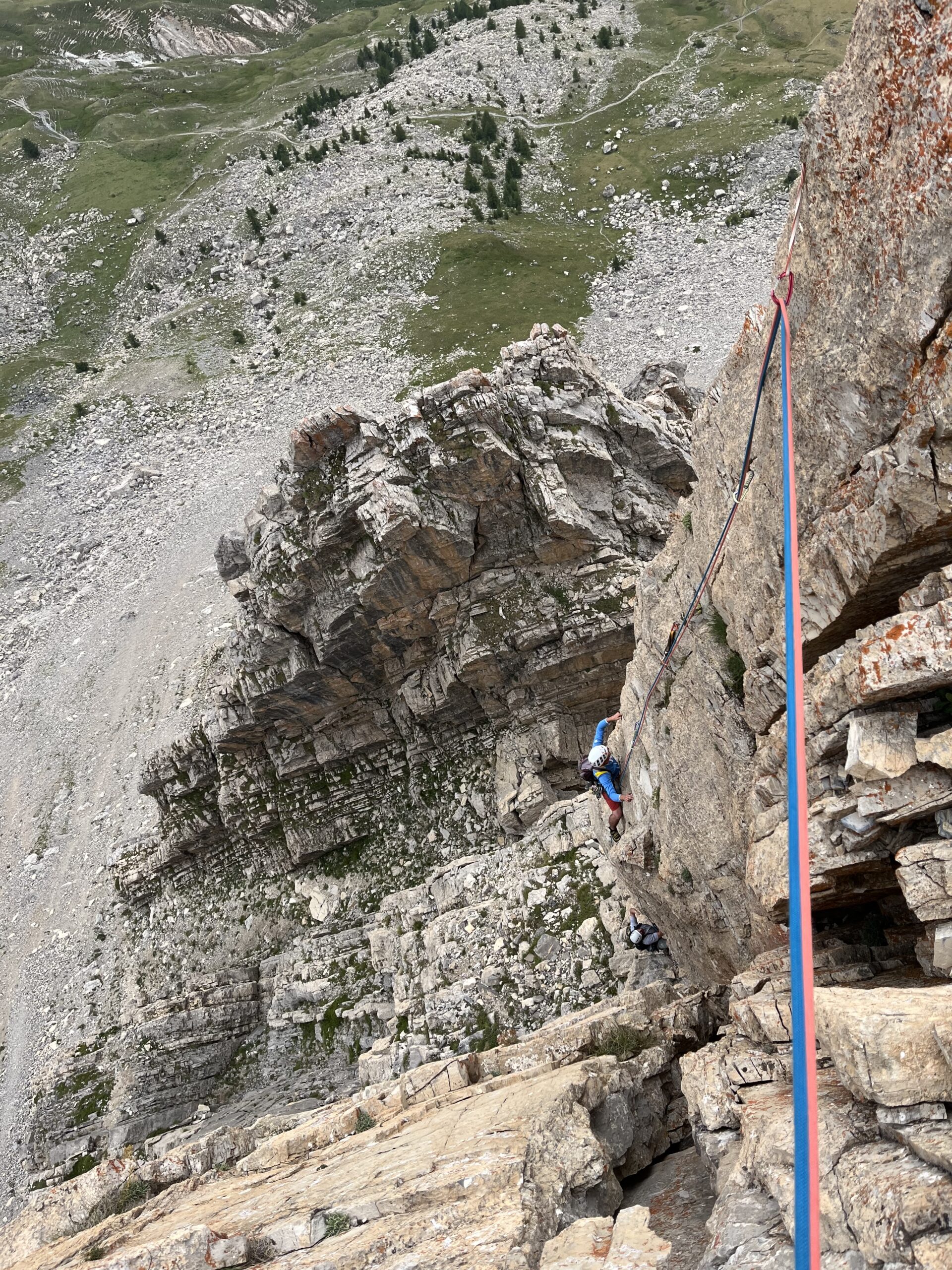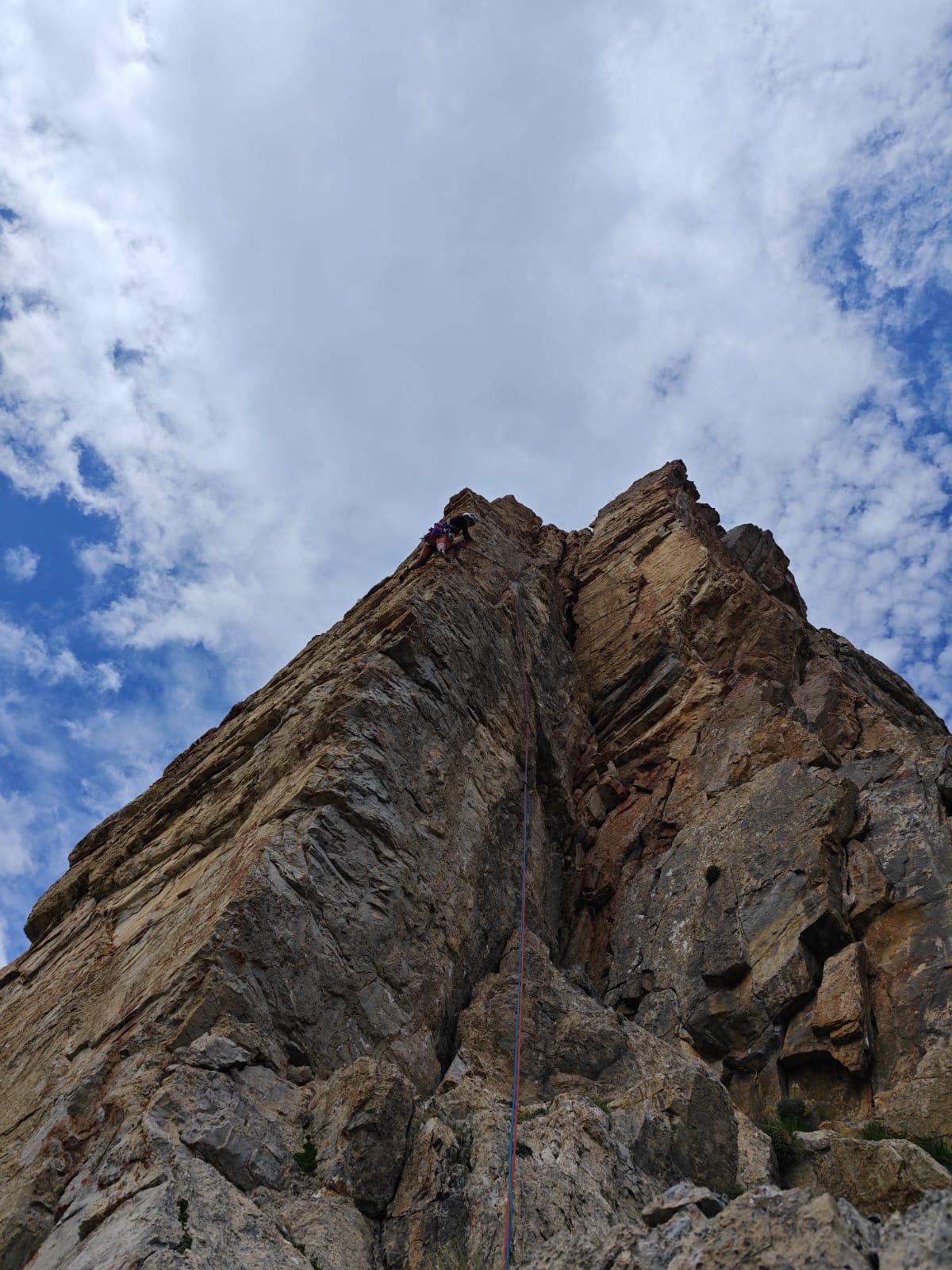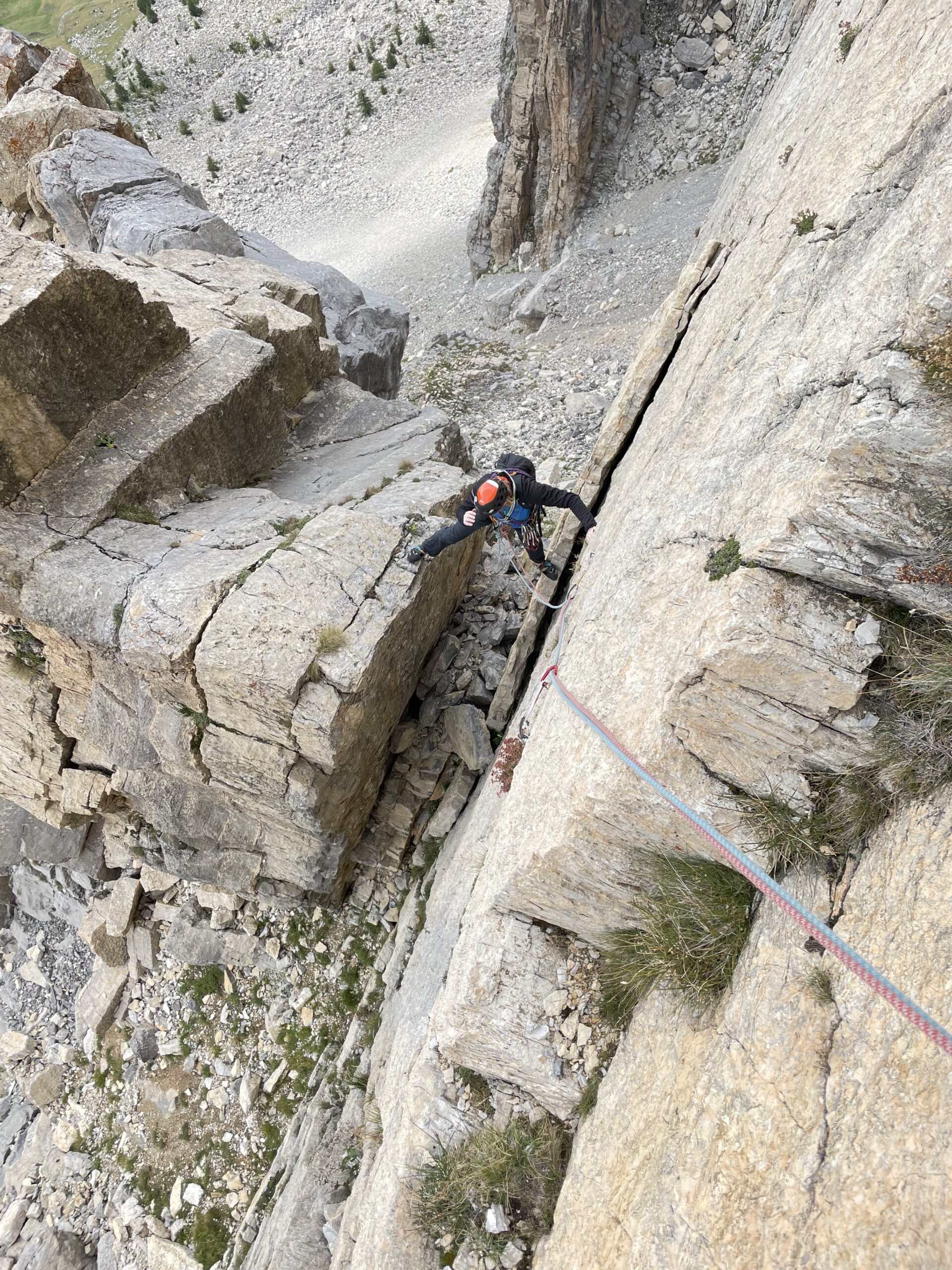 - 11° Tiro Salire a dx. la placca spigolo arioso 35 mt. Sosta Catena