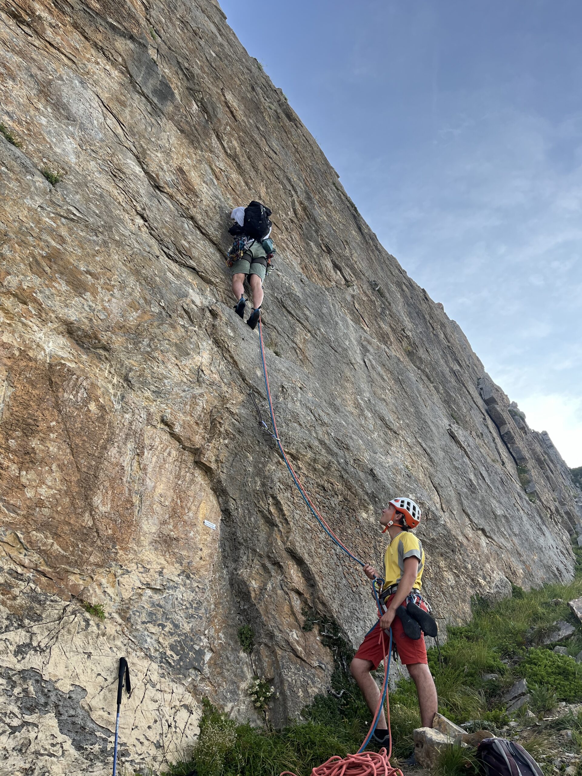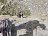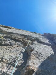 - 2° Tiro muretto uscita alla cengia 25 mt. Sosta Catena