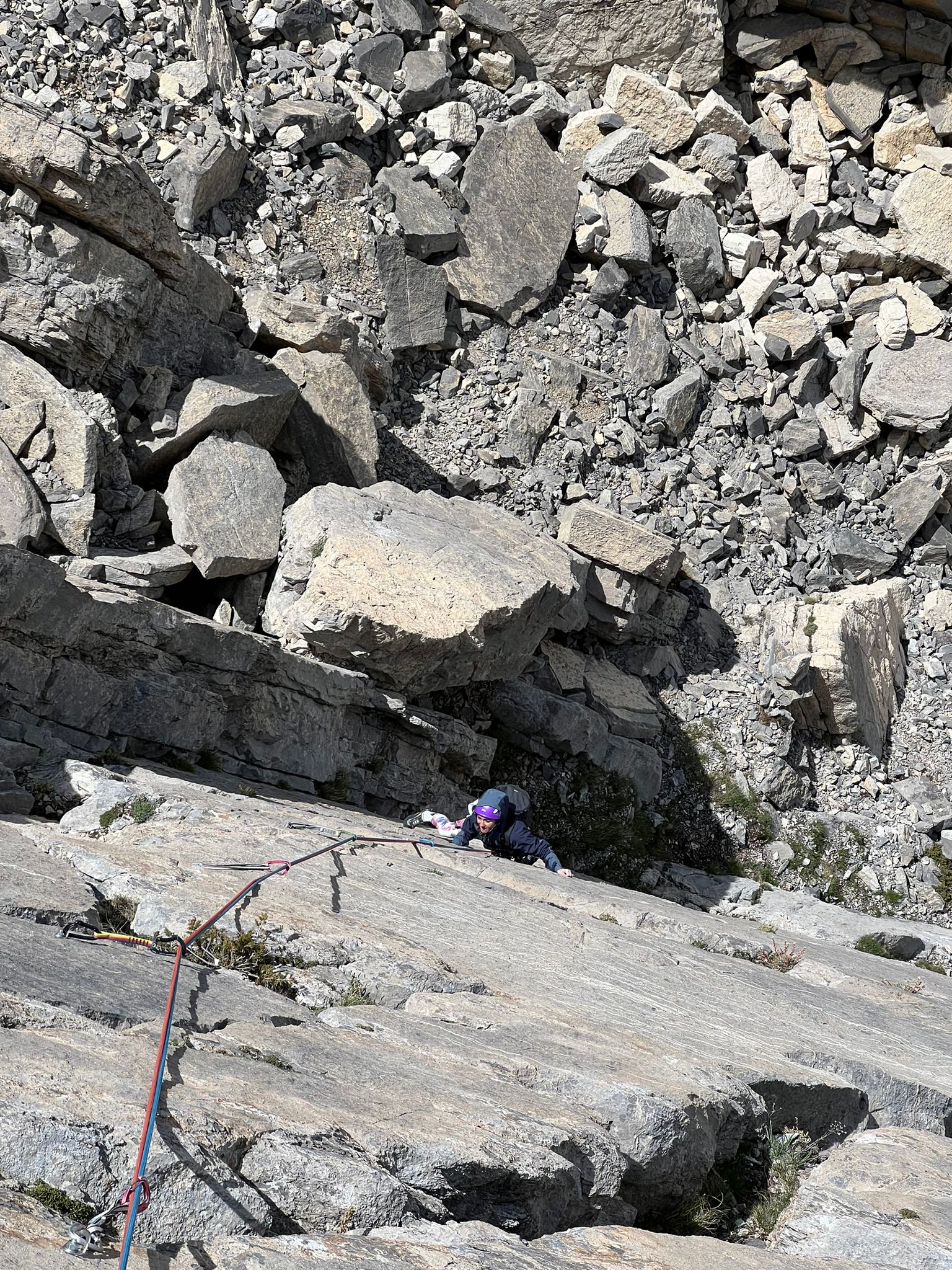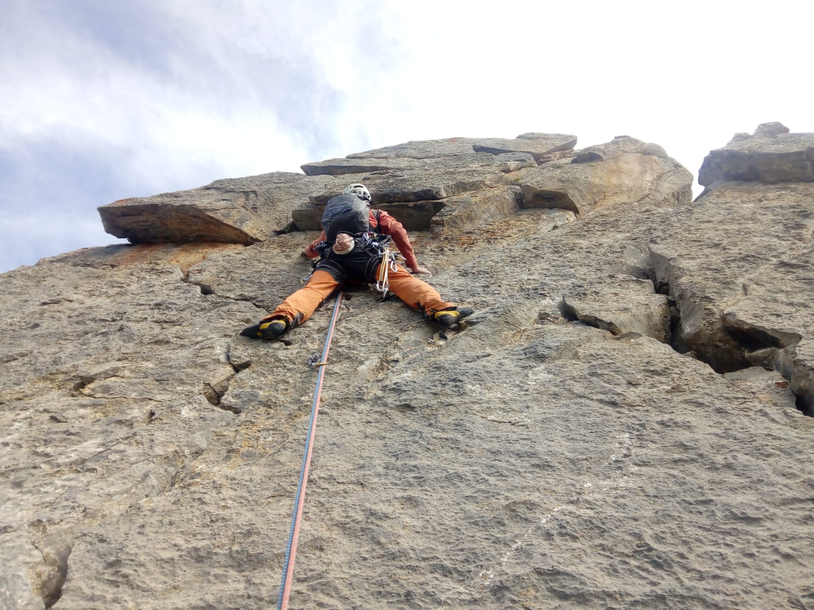 - 5° Tiro Salire la placca e fessura 45 mt. Sosta 2 Spit