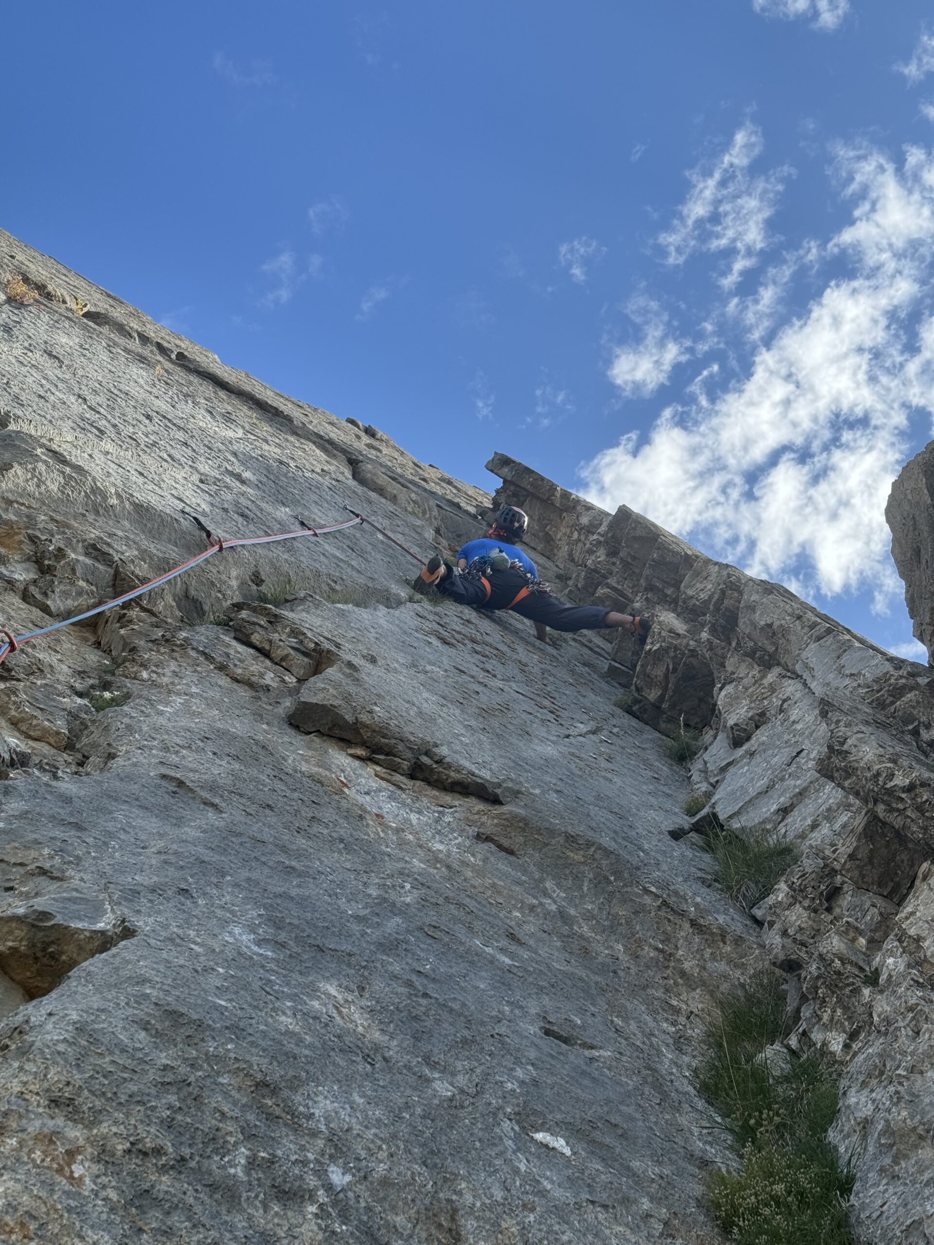 - 9° Tiro Salire la fessura un po’ obliqua 30 mt. Sosta 2 Spit