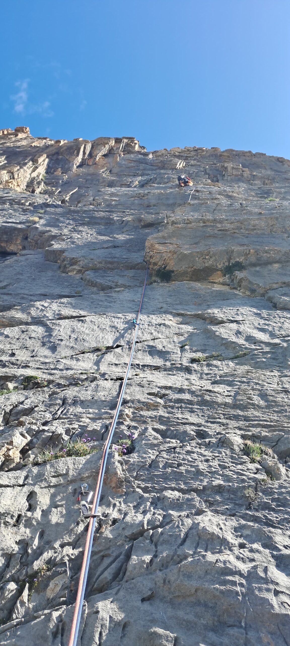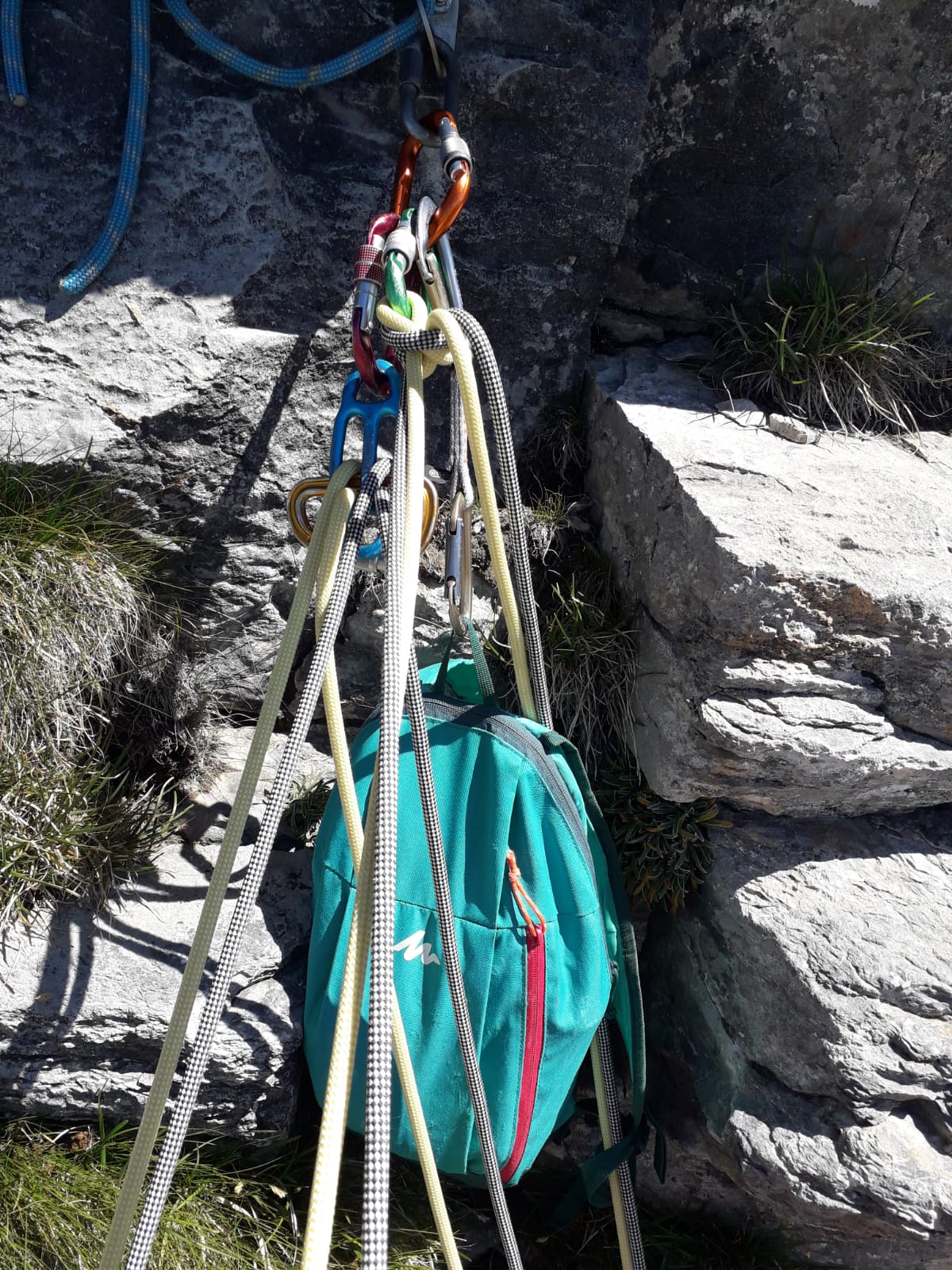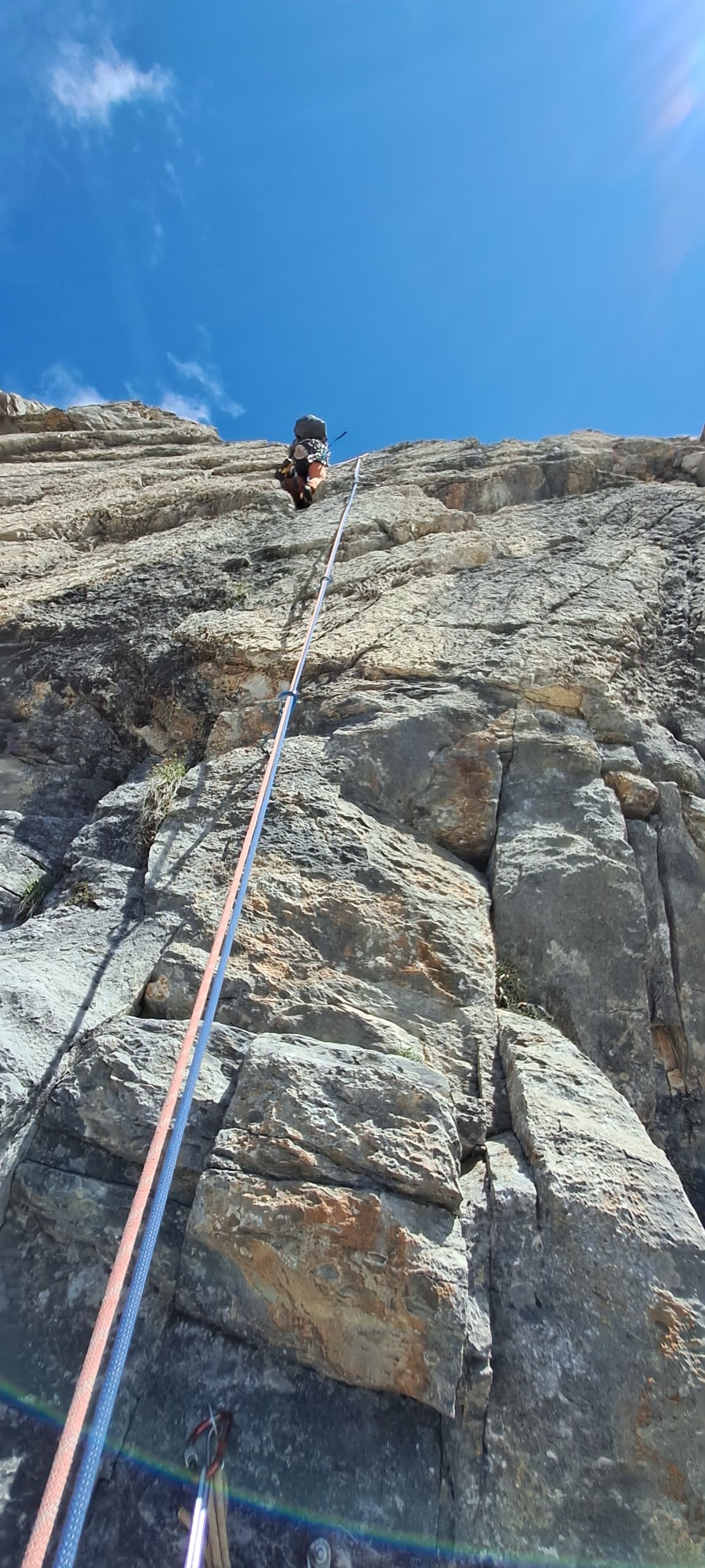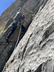 utili 2 corde da 50 m, 8 rinvii ed eventualmente un friend medio-grande per la prima e terza lunghezza.