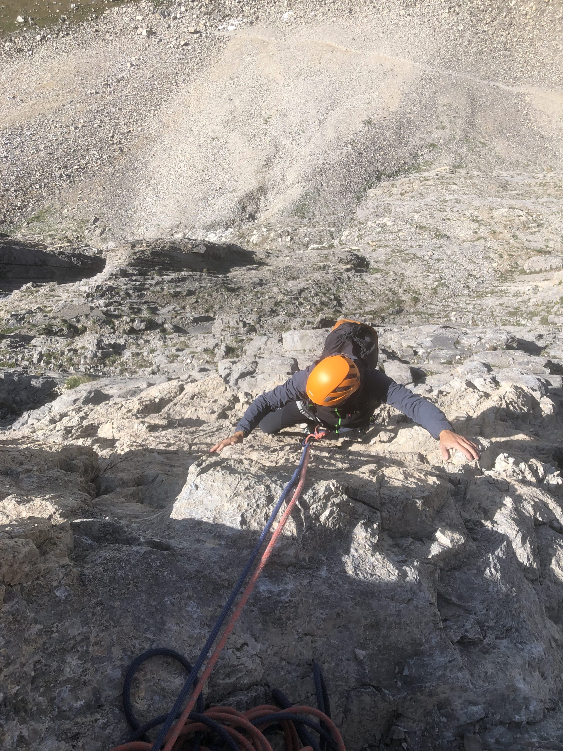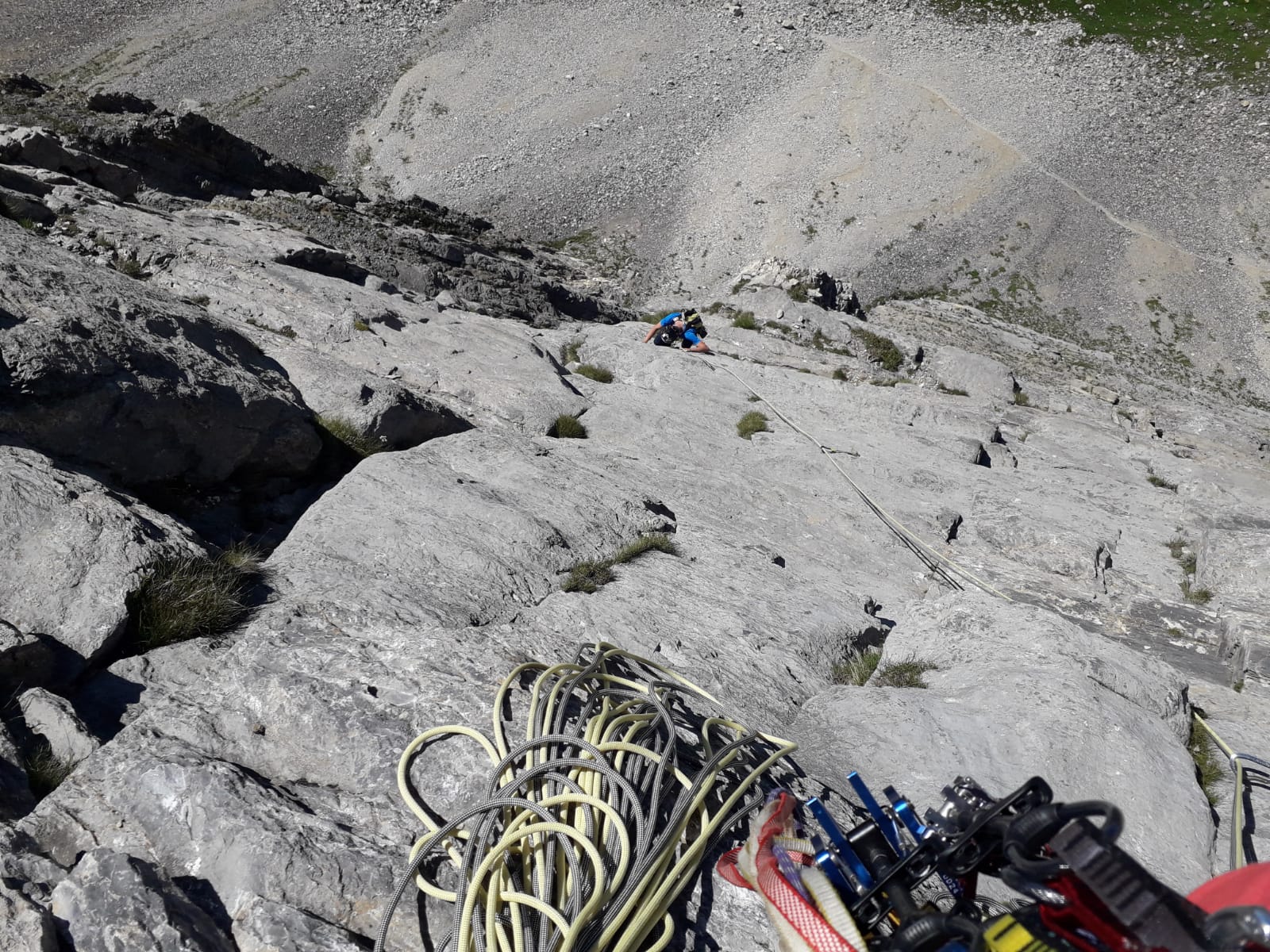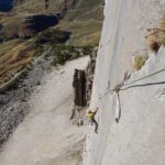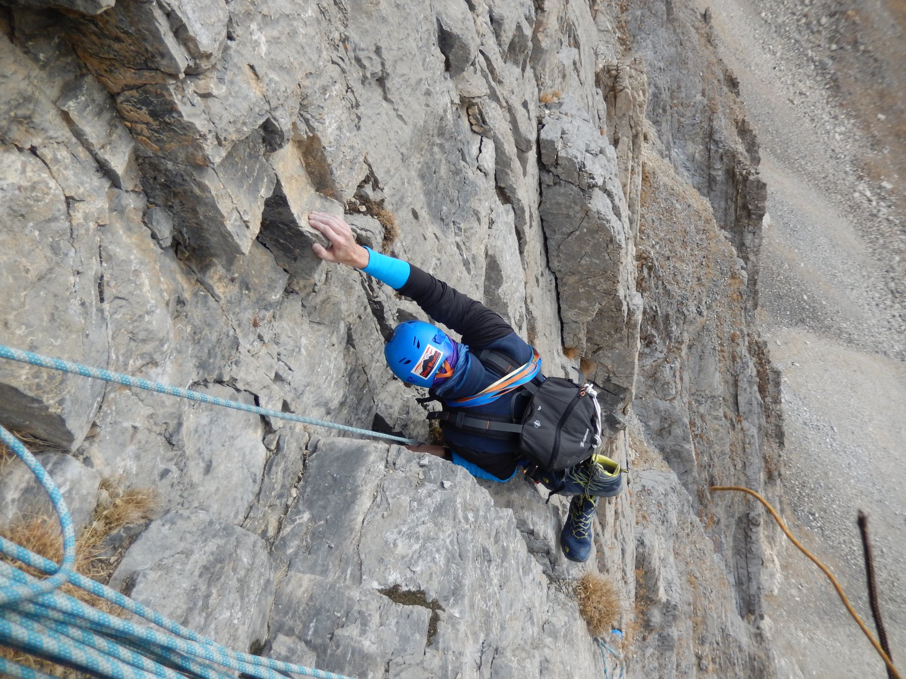 utili 2 corde da 50 m, 8 rinvii ed eventualmente un friend medio-grande per la prima e terza lunghezza.