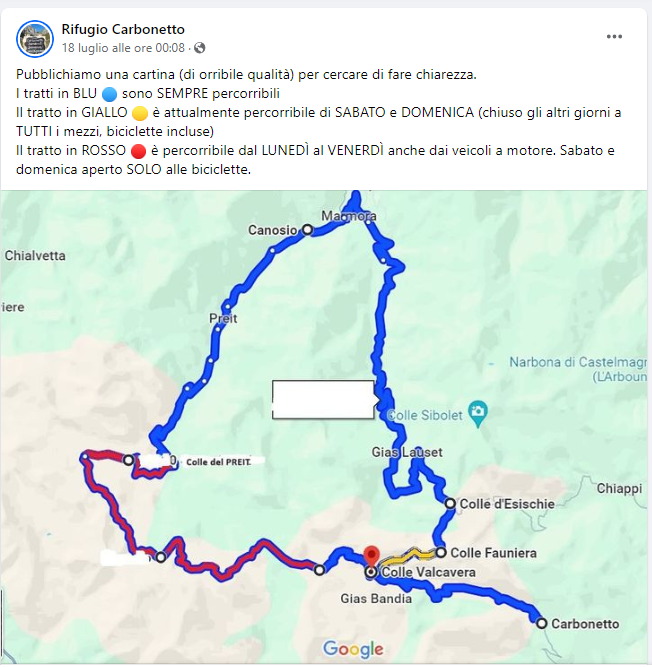 Allego foto del post del Rifugio Carbonetto, a fare un po' di chiarezza con i divieti e chiusure strade di questo periodo.