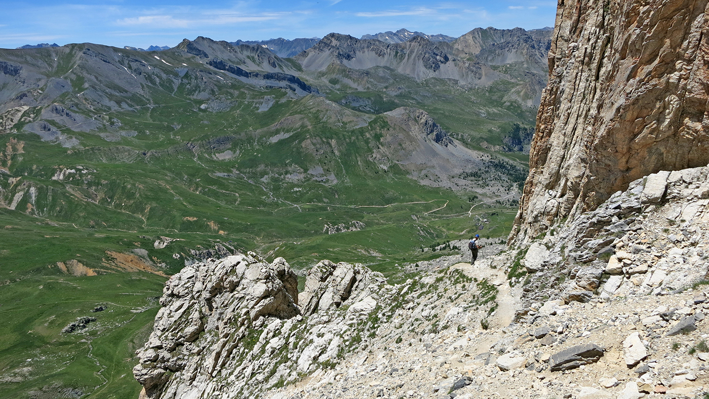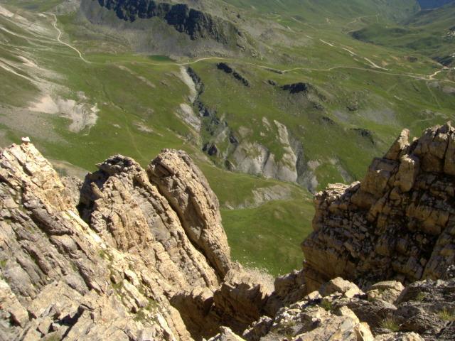Dal colle si segue la strada che scende sempre verso SO fino ad incrociare e prendere quella che sale verso NO al colle tra il Becco Grande e il Becco Nero. Da qui sempre verso NO lasciando a destra il sentiero che sale al colle della Meja e ci si congiunge alla via normale.