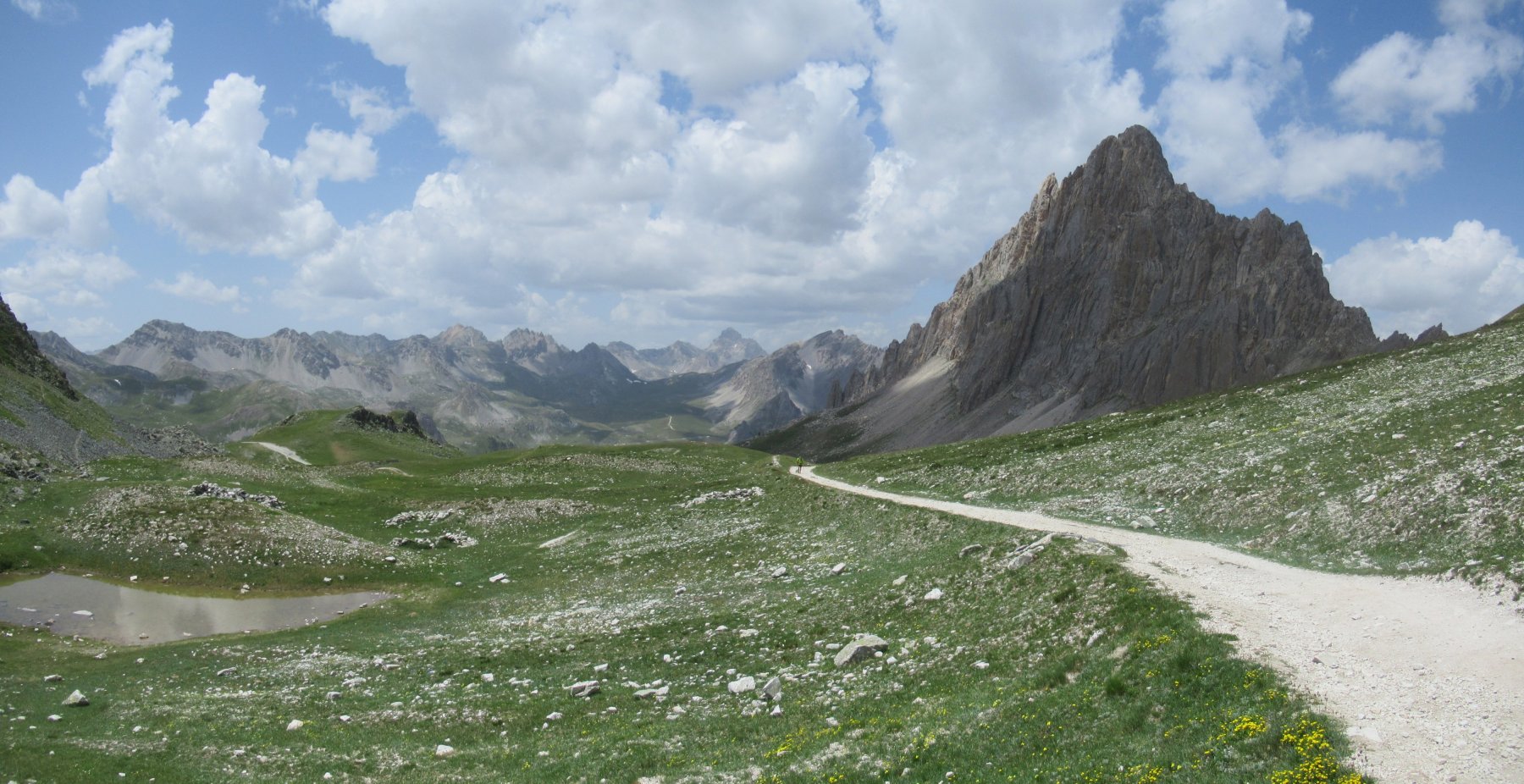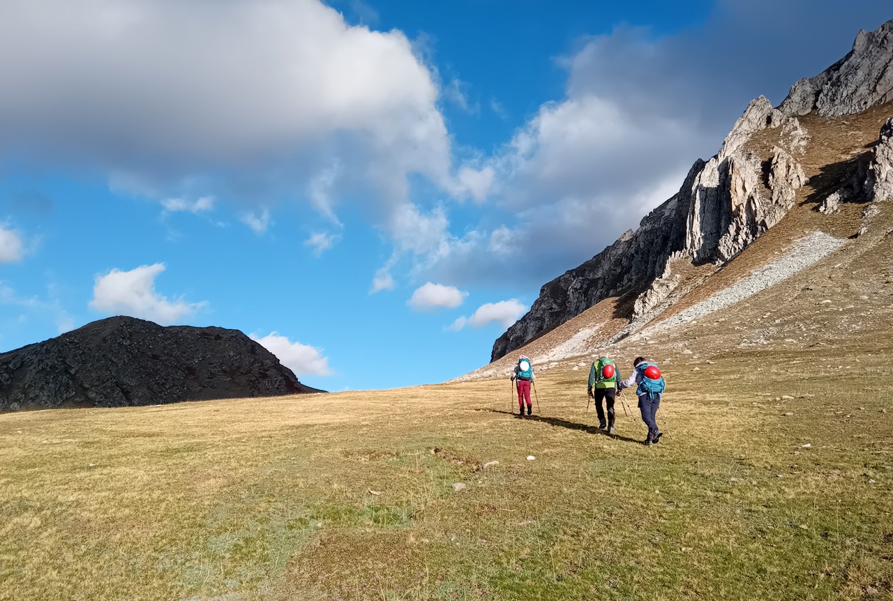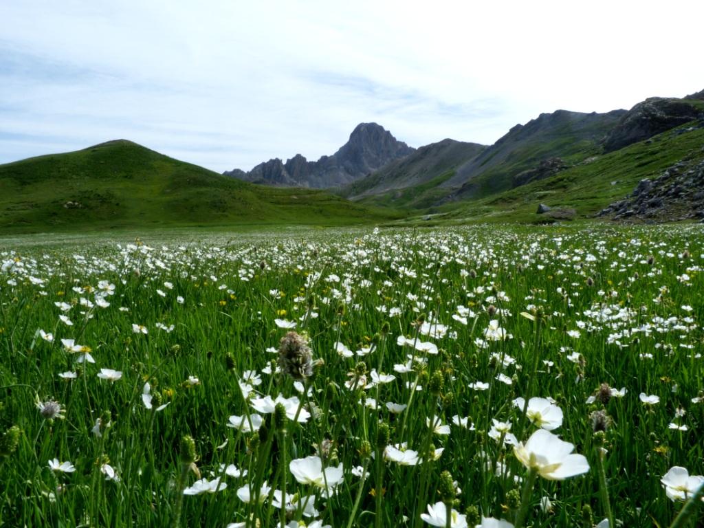 Risalire la costa erbosa dietro il parcheggio (nord) in direzione del Colle d’Ancoccia;