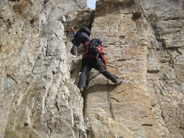 Dovendo rientrare non troppo tardi eccomi di nuovo (dopo un po di anni) in vetta a questa bellissima montagna che è un ottimo terreno per chi, come le mie gentili compagne di oggi, inizia a cimentarsi con i primi percorsi non propriamente “escursionistici”. Il passaggio chiave (II) alla fine del primo canale è ora, attrezzato con la catena, sicuramente molto più facilitato specialmente in discesa.