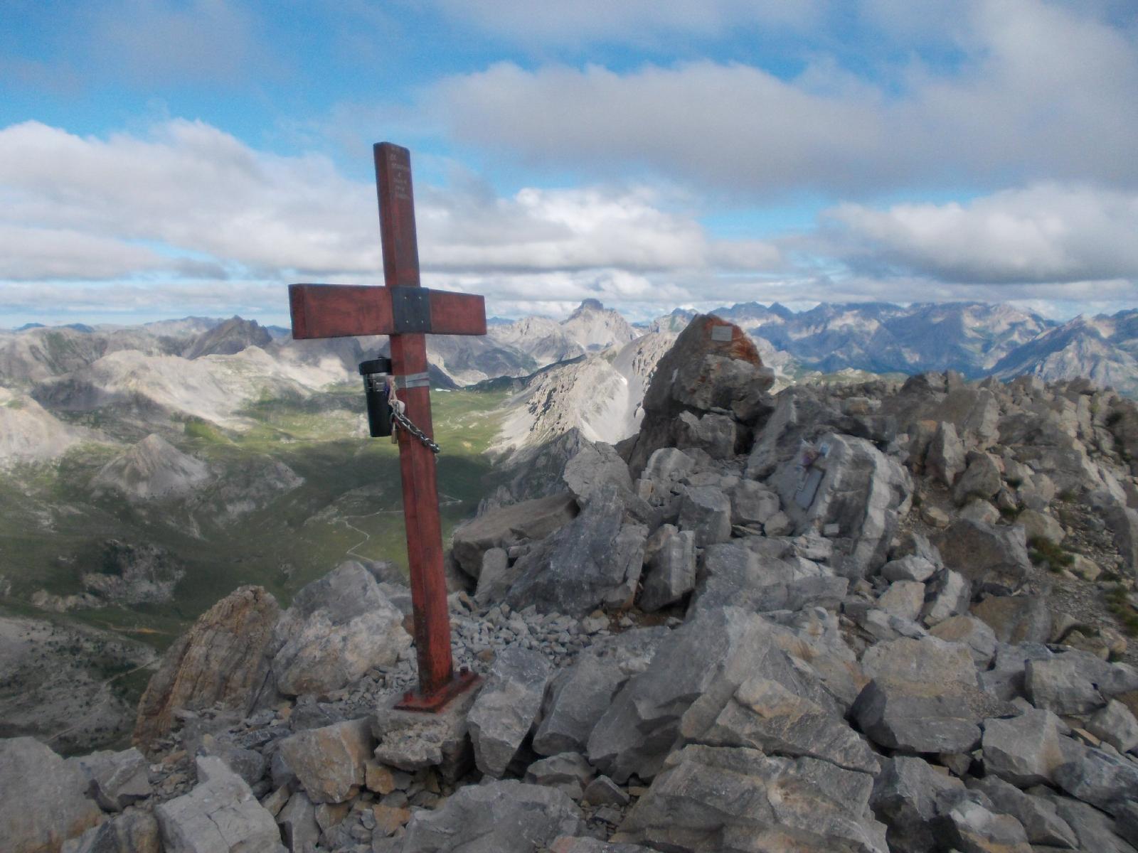 Questa è la 5° volta che salgo la Meja,la prima in solitaria.Questa estate balorda ci costringe a scegliere itinerari brevi,il meteo non lascia scampo,partire presto e arrivare all’auto nel primo pomeriggio,altrimenti ci si becca la pioggia ,o il temporalaccio,che è ancora peggio.Alle 8 e 45 ero già in cima e mi sono goduto tre quarti d’ora di tranquillità osservando il panorama ,anche se all’orizzonte c’erano già le nuvole che coprivano buona parte dell’arco alpino.Nessuno in cima ,solo piu’ in basso ho incontrato 5 o 6 che salivano.Ringrazio la coppia di alpinisti francesi che mi hanno trovato le chiavi del Suzuki,altrimenti erano guai,credo che uno di loro fosse il fortissimo Gabarrou,mi è sembrato di conoscerlo,avendolo visto un paio di volte a Mondovi’.